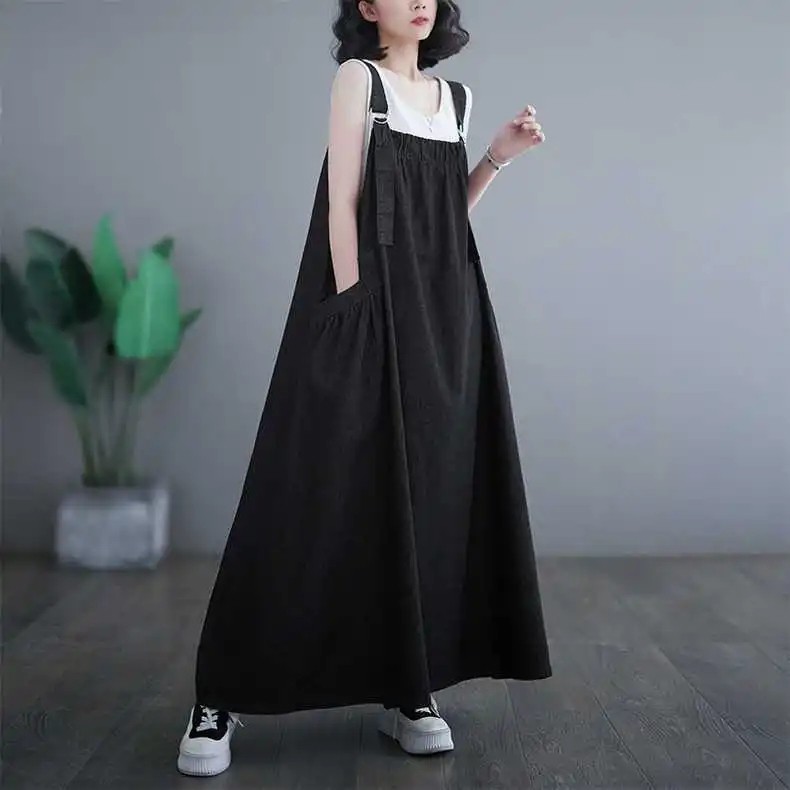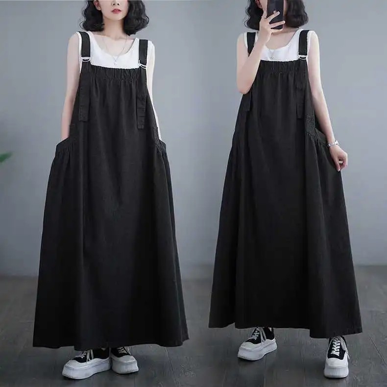 复古宽松舒适胖mm大码女装连衣裙女夏季2024新款显瘦长款背带裙子