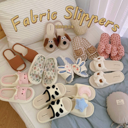 少女心四季通用亚麻拖鞋男女时尚休闲家用吸汗舒适网红情侣地板鞋
