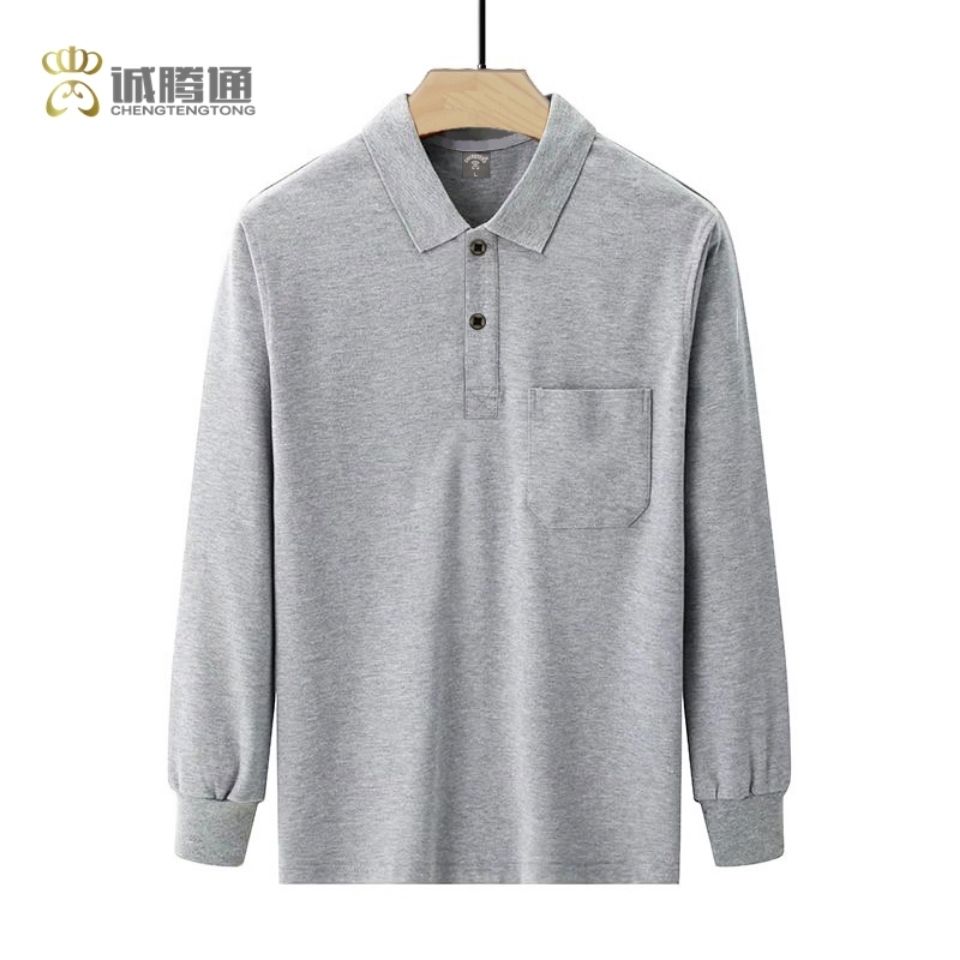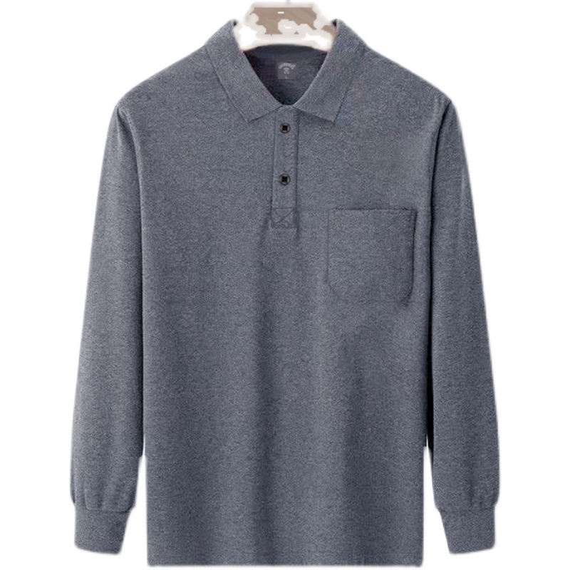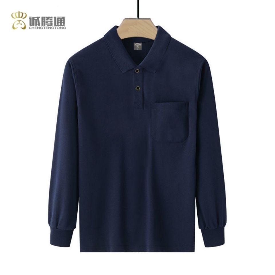 秋季男装Polo衫男士长袖t恤中老年翻领纯色上衣真口袋爸爸装新款