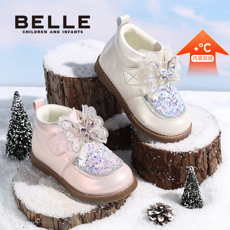 百丽童鞋女童棉鞋加绒秋冬新款小女孩宝宝冬鞋儿童公主鞋女宝皮靴