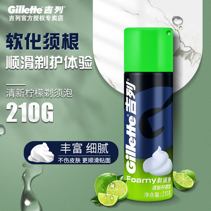 吉列手动剃须刀泡沫男刮胡泡刮胡膏啫喱须膏剃毛膏清新柠檬210g
