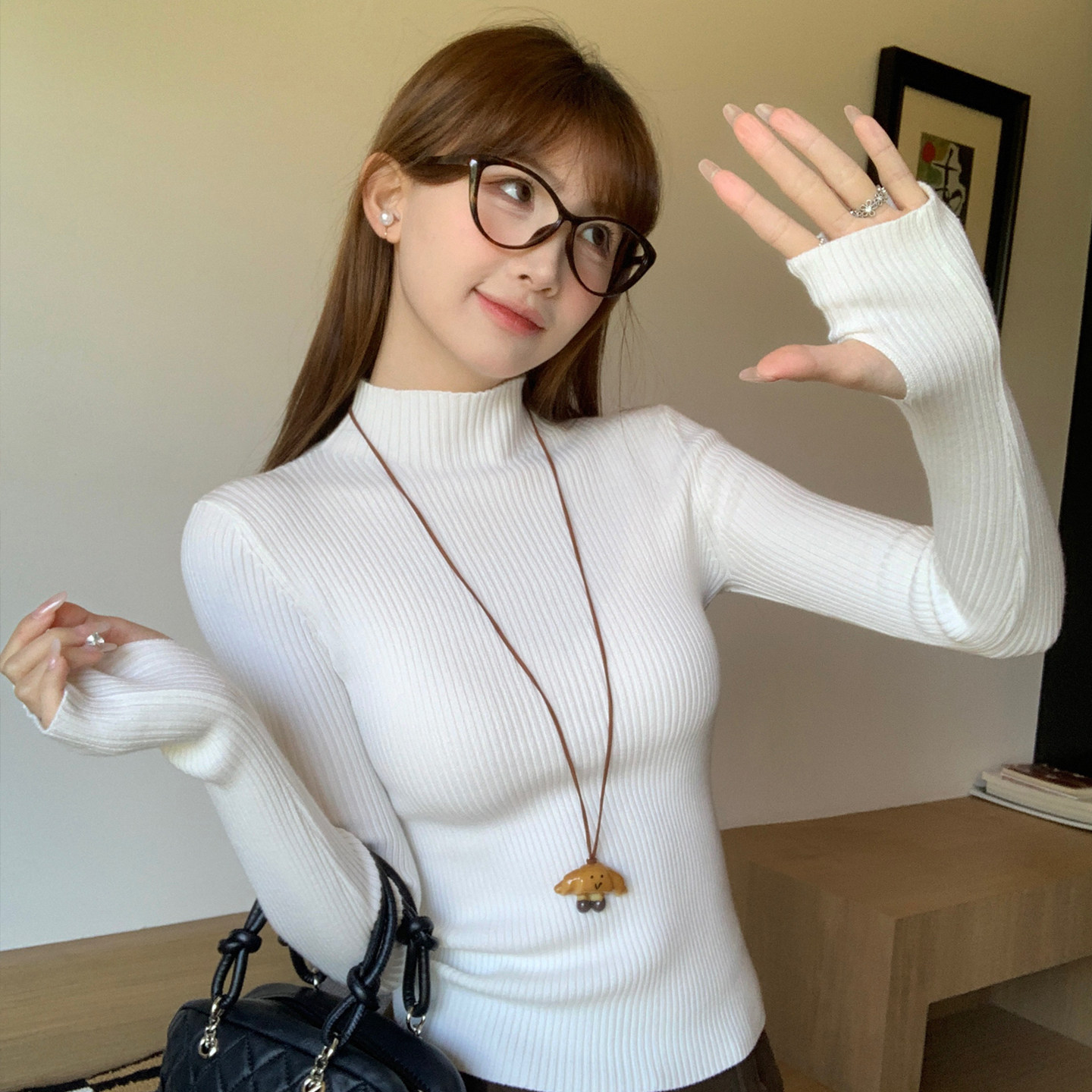【绝美内搭】灰色半高领打底衫