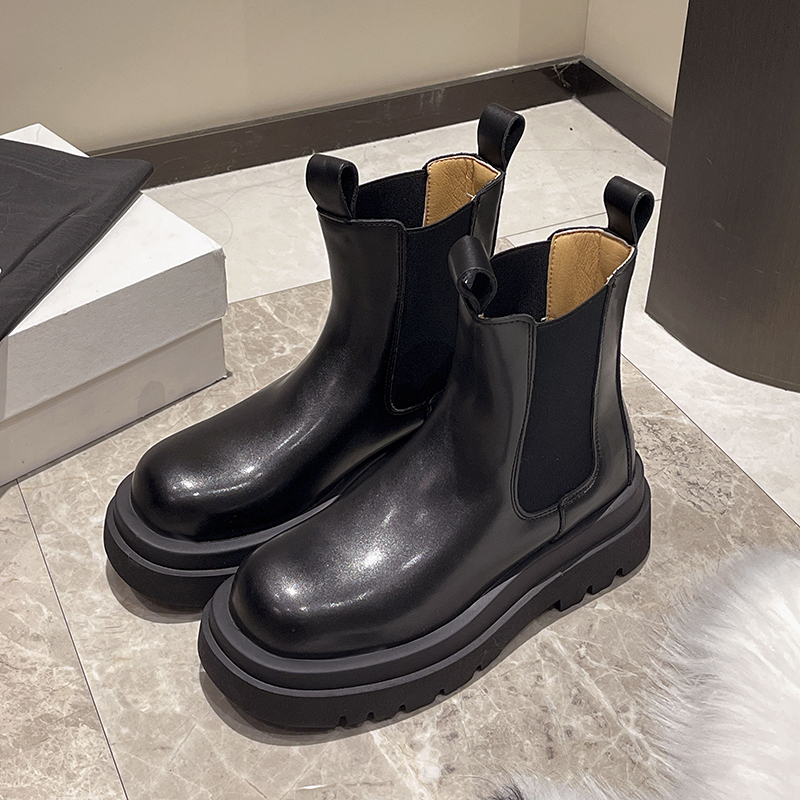 真皮烟筒马丁靴女2025春季新款厚底粗跟切尔西靴时尚百搭套筒短靴
