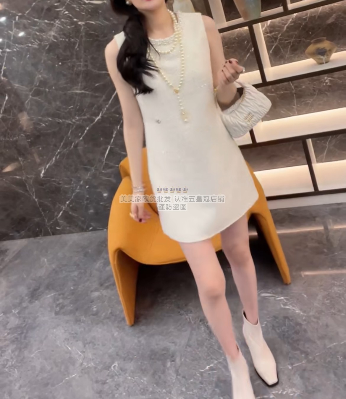 欧货2025春装新款时尚圆领钉珠无袖背心连衣裙亮片显瘦短款A字裙