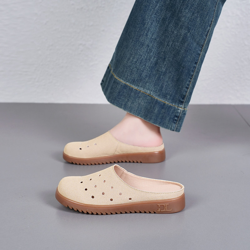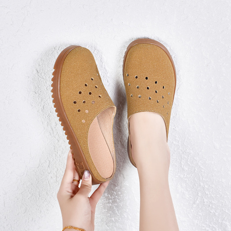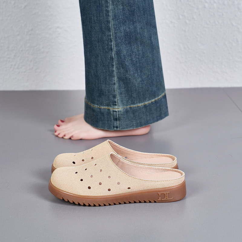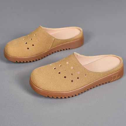 包头牛筋底半拖鞋女夏外穿孕妇博肯凉拖大码41到42镂空洞洞勃肯鞋