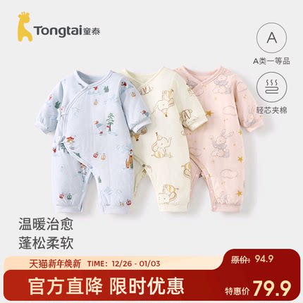 童泰婴儿连体衣秋冬季纯棉夹棉新生儿爬服初生宝宝蝴蝶哈衣和尚服