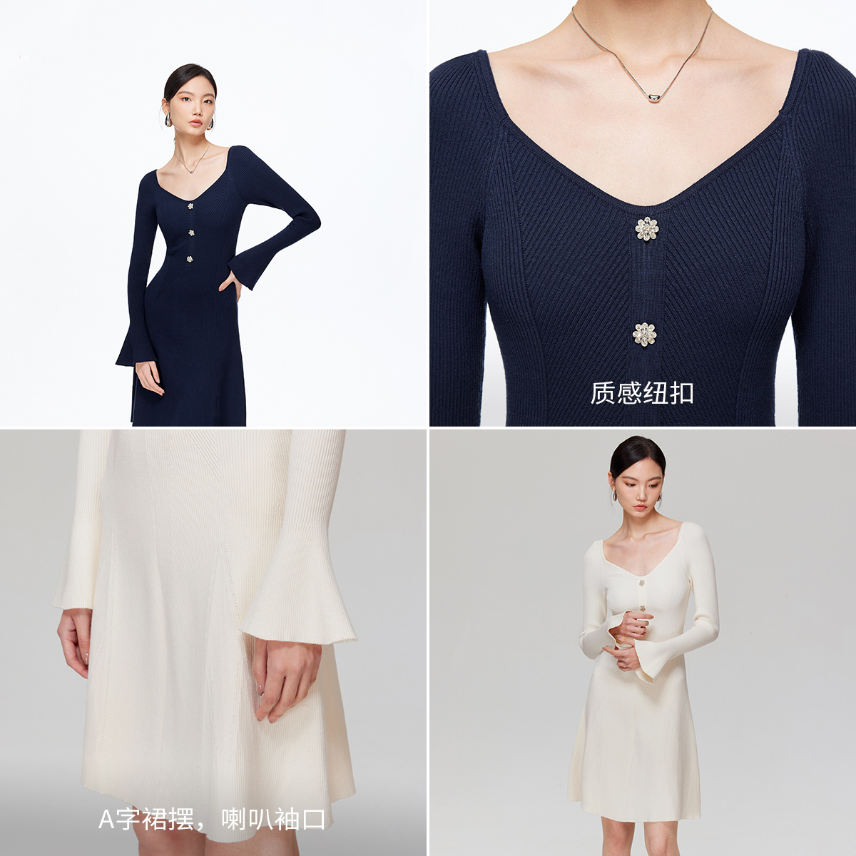 m区绫致Vero Moda连衣裙2025秋冬喇叭袖口收腰修身A字针织裙优雅