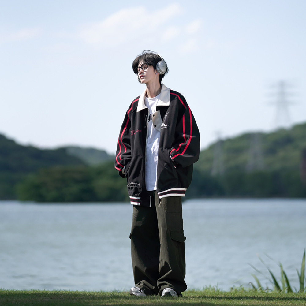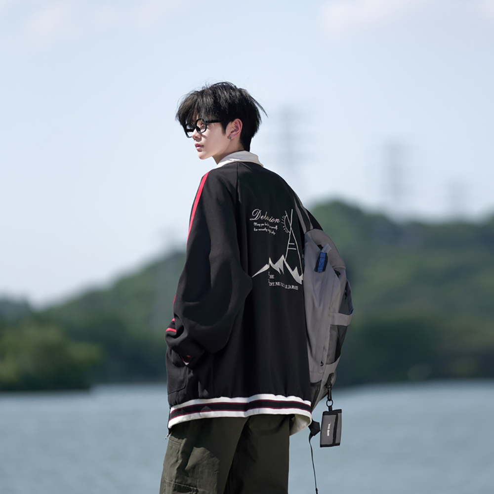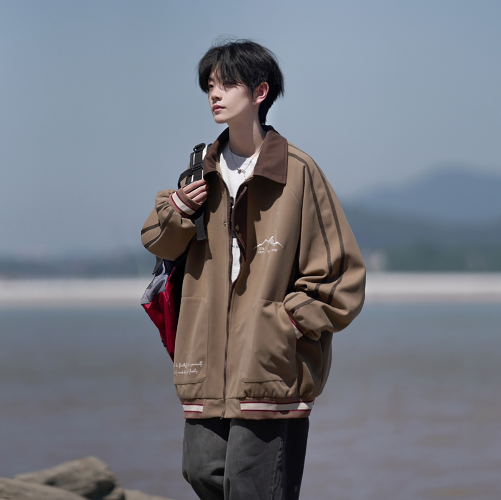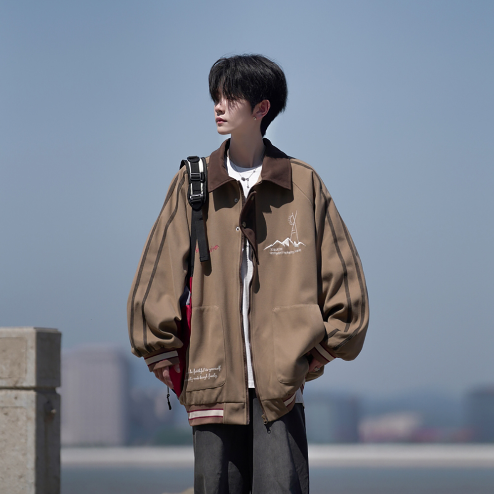 棒球服外套男2025春秋季新款美式复古宽松撞色翻领大码飞行员夹克