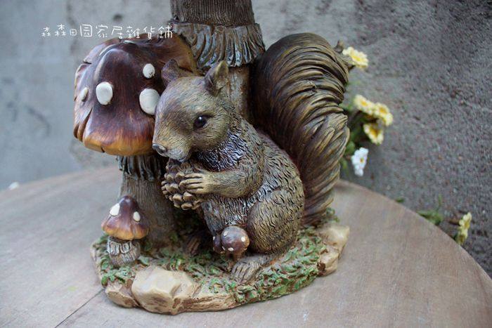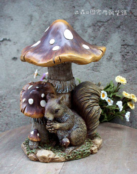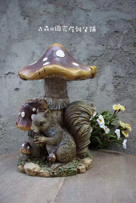 户外花园装饰品复古做旧蘑菇娃娃拍摄道具小松鼠松果创意树脂摆件