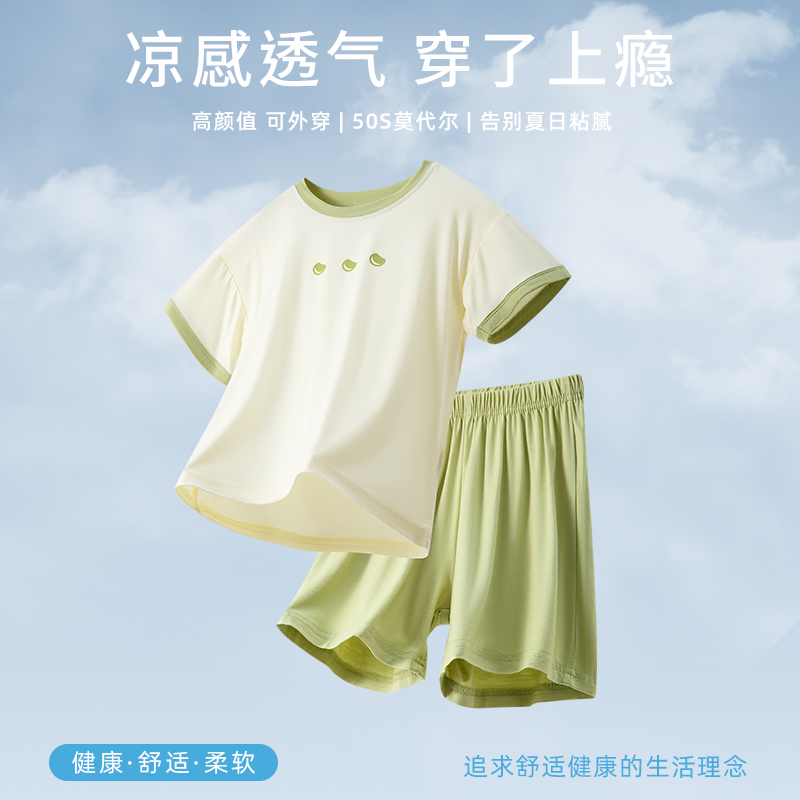 夏款薄款莫代尔儿童套装男童短袖短裤男孩睡衣两件套女童空调服