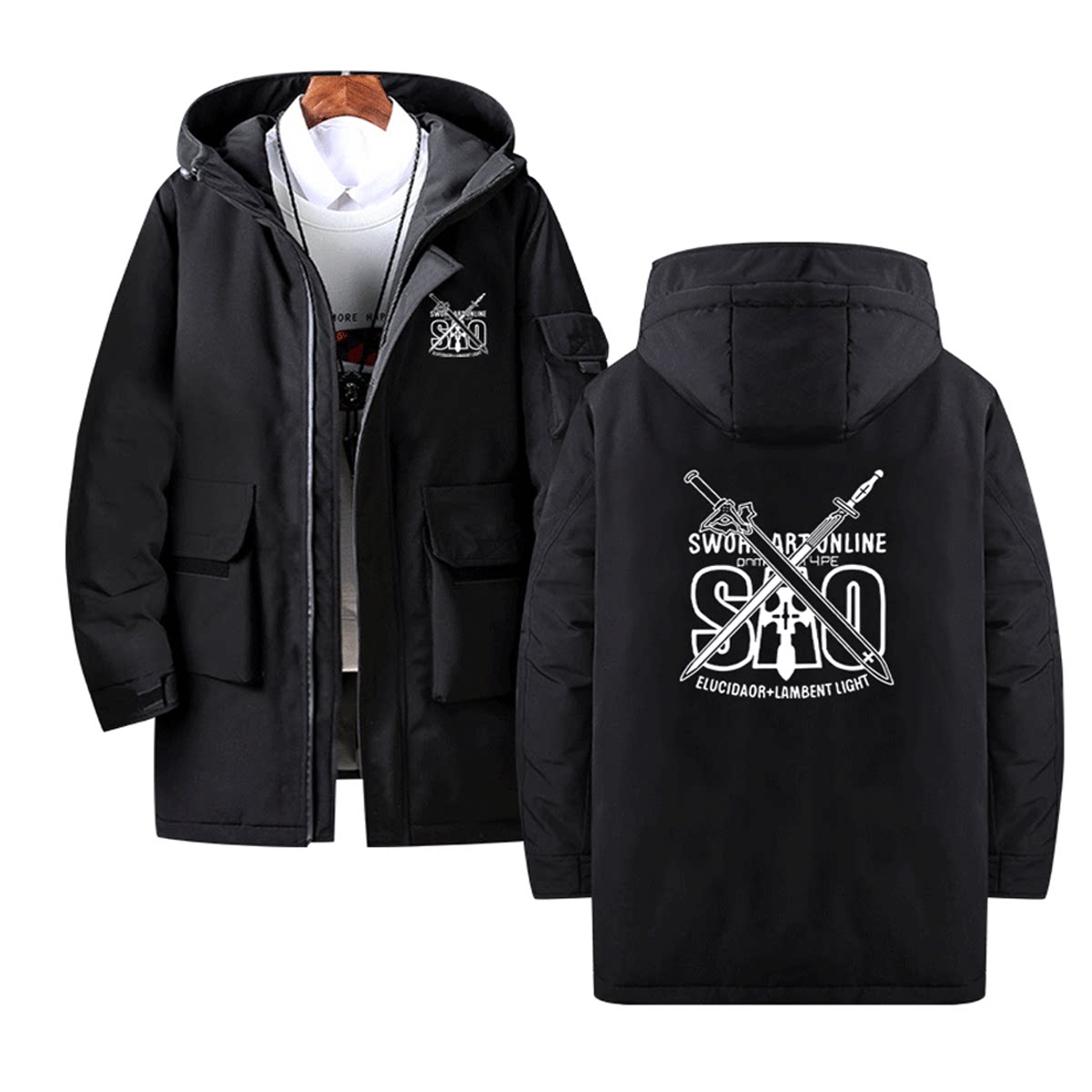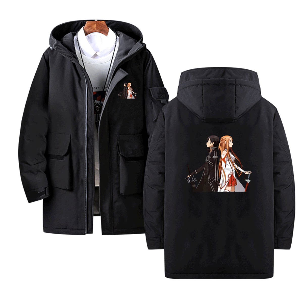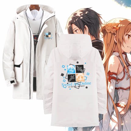 刀剑神域动漫周边亚丝娜桐人二次元男女情侣可定制中长款冬羽绒服