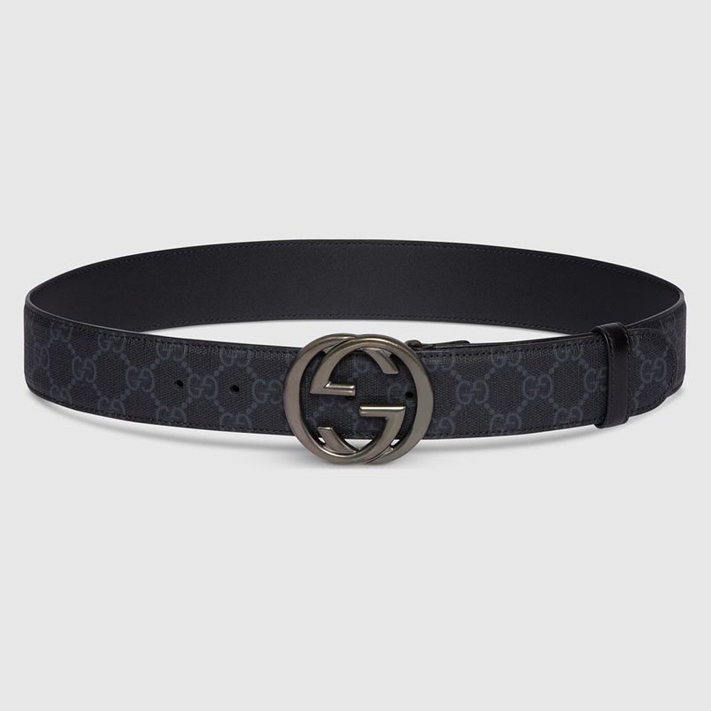 自营欧洲直邮Gucci古驰男士黑色经典老花帆布GG腰带