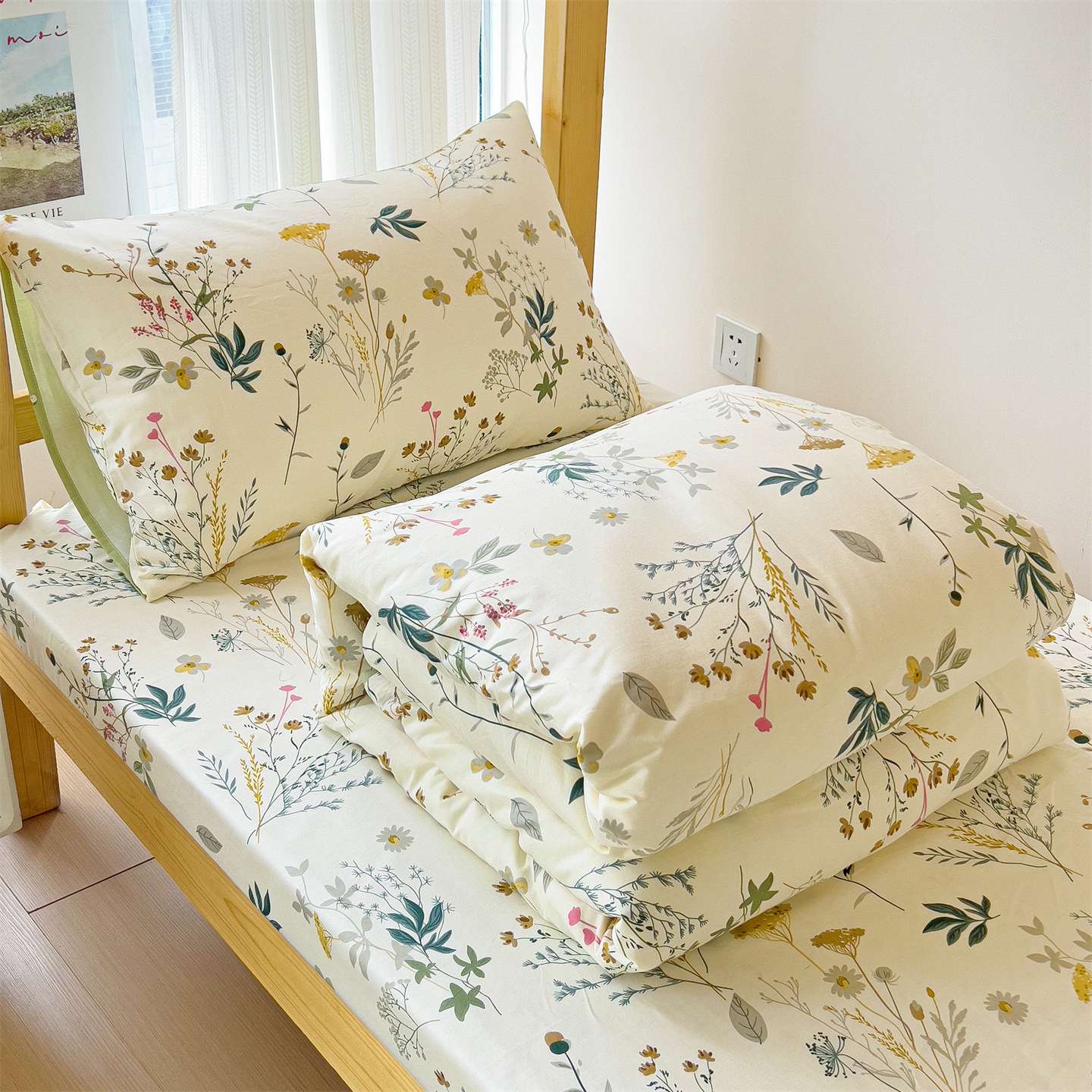 {活动价}纯棉印花三件套100全棉单人学生宿舍床单被套3件套小清新