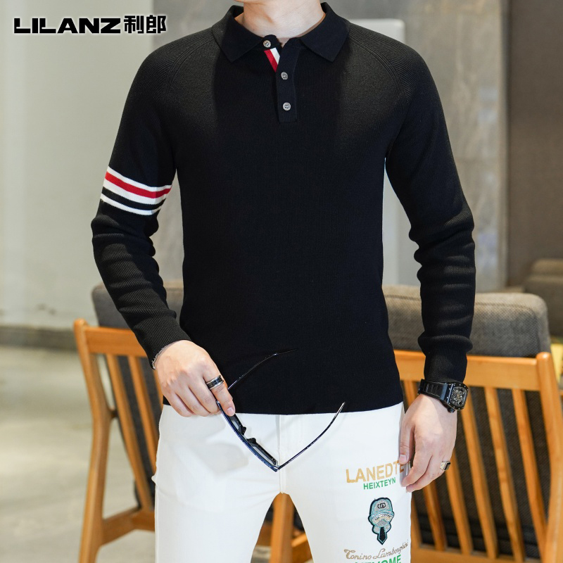 利郎高端时尚长袖T恤男士春秋季打底薄款针织Polo衫韩版潮流毛衣