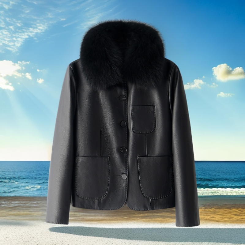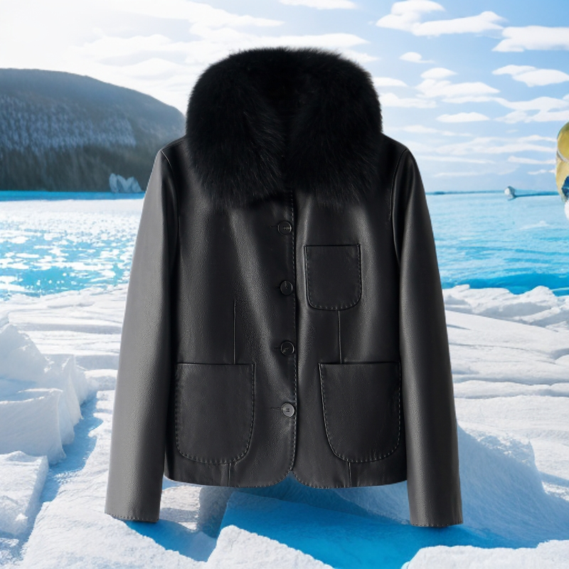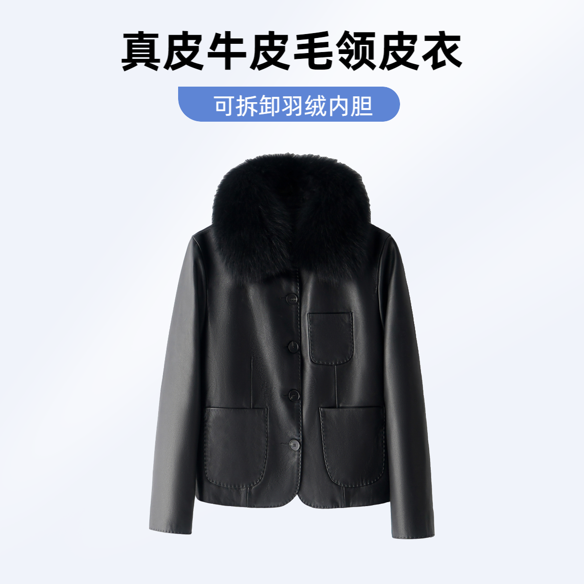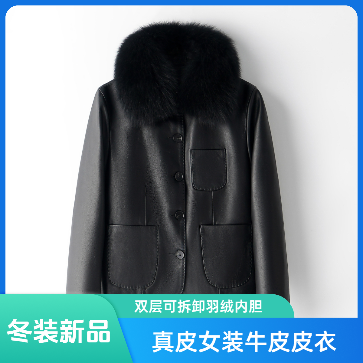 海宁真皮女装头层牛皮皮衣可拆卸羽绒内胆女士修身短款皮夹克显瘦