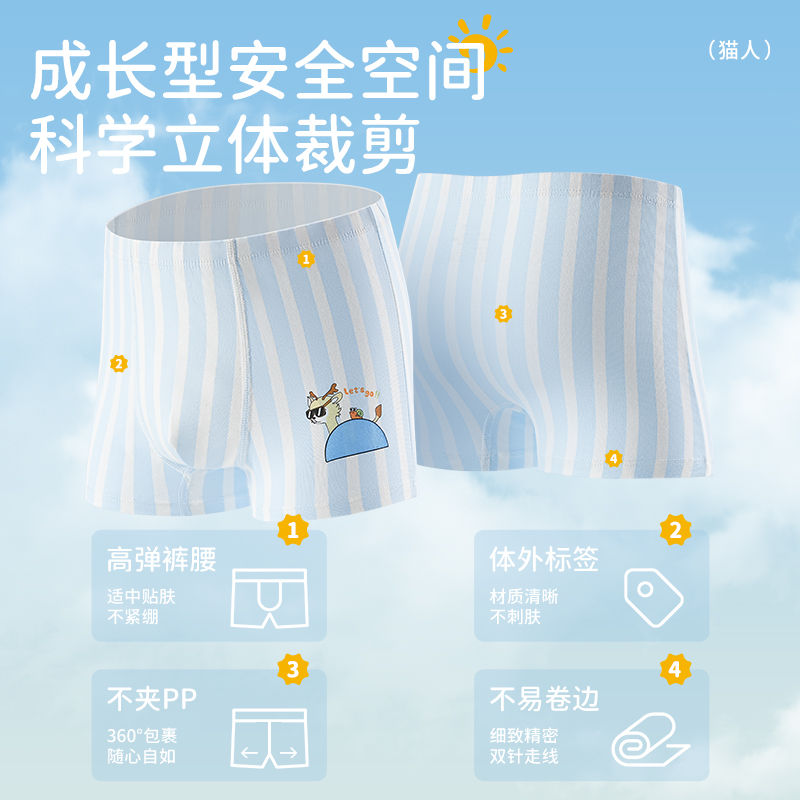 猫人纯棉7A抑菌男童内裤儿童