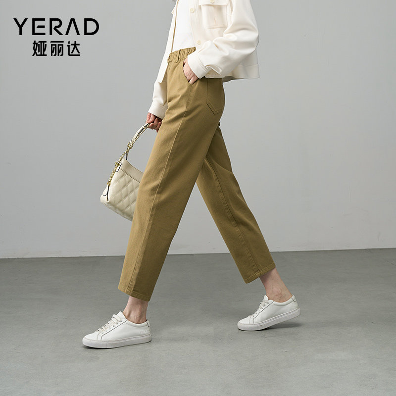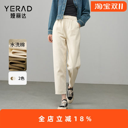 娅丽达白色纯棉牛仔裤直筒老爹裤女秋季2025新款驼色女裤时尚裤子