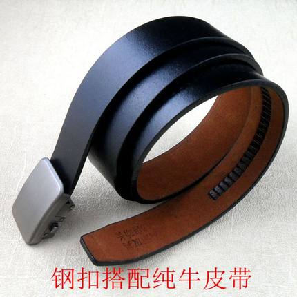 皮带男士头层牛皮裤带真皮自动扣光面纯牛皮304不锈钢头商务腰带
