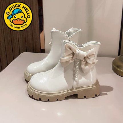 小黄鸭女童靴子儿童马丁靴2025新款秋冬季宝宝时尚短靴舒适小皮靴