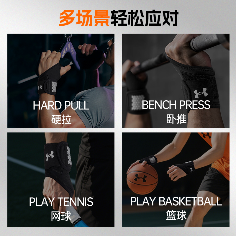 安德玛健身护腕男防扭伤腱鞘手腕护具加压腕带卧推羽毛球网球运动