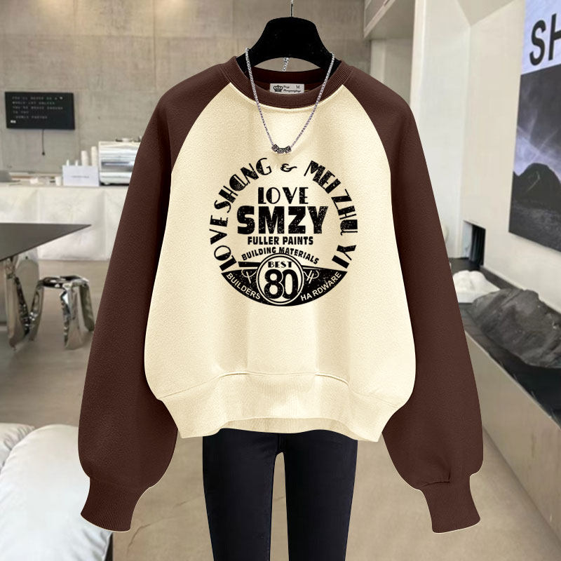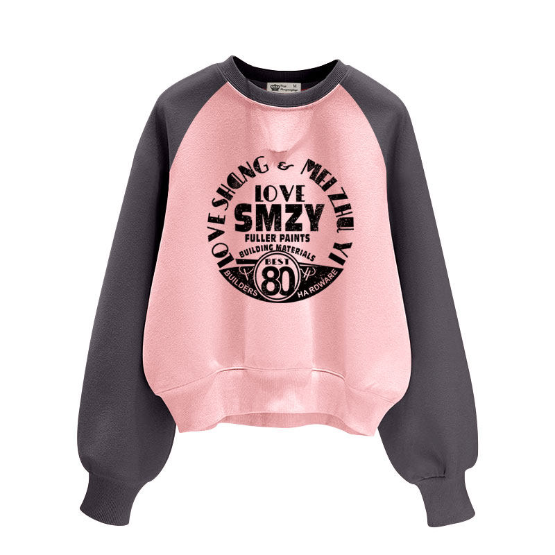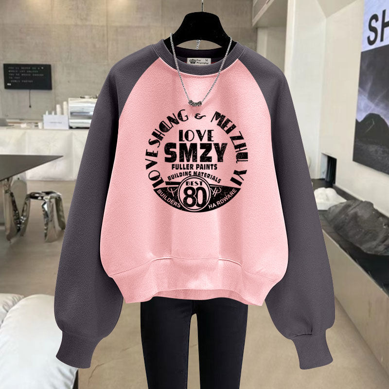 潮牌字母圆领短款卫衣女2025春秋冬宽松慵懒风加绒加厚长袖套头潮
