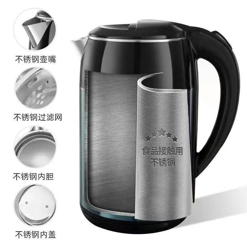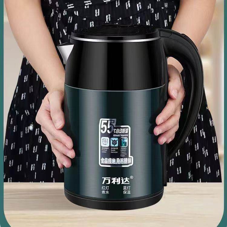 万利达电热水壶家用不锈钢电热保温烧水壶自动断电大容量快开水壶