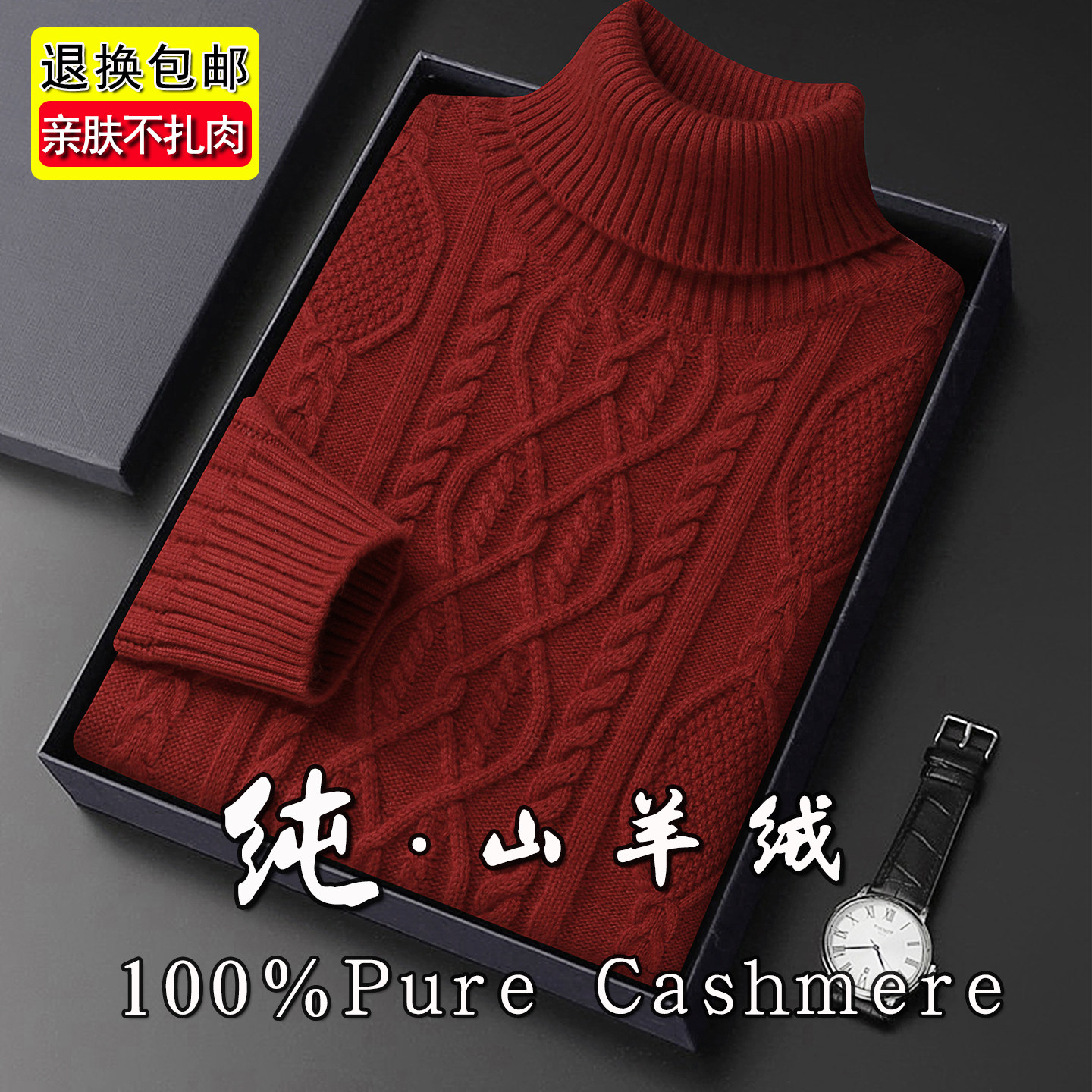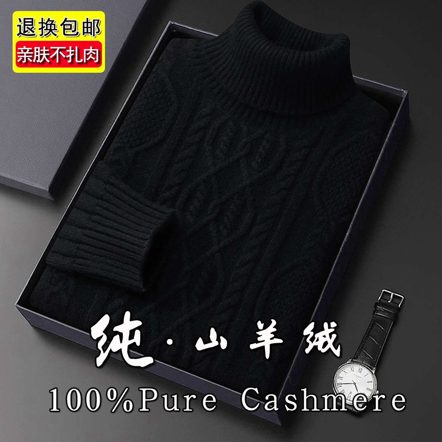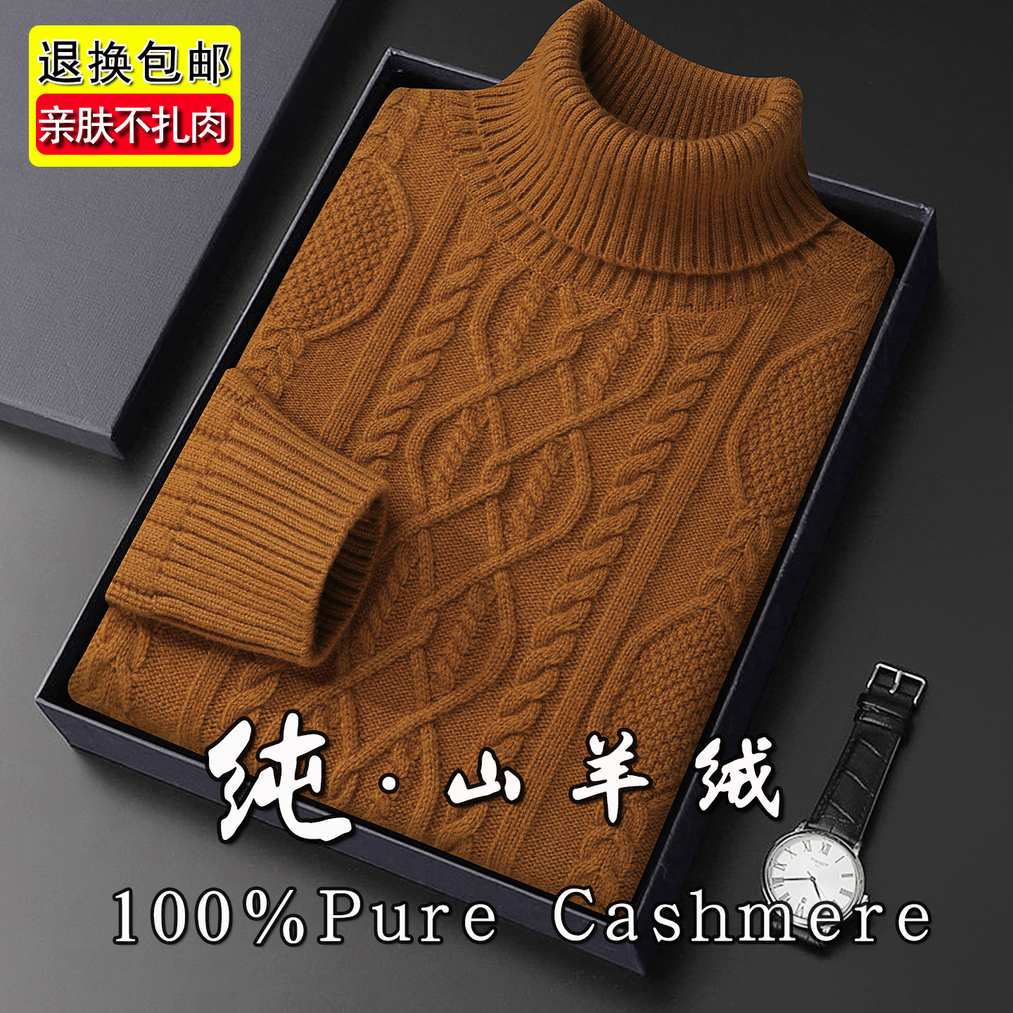 鄂尔多斯市特厚款男士纯色山羊绒高领毛衣冬季保暖针织打底羊毛衫