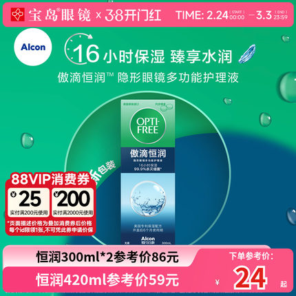 爱尔康傲滴恒润隐形眼镜美瞳护理液润滑冲洗消毒旗舰店正品大小瓶