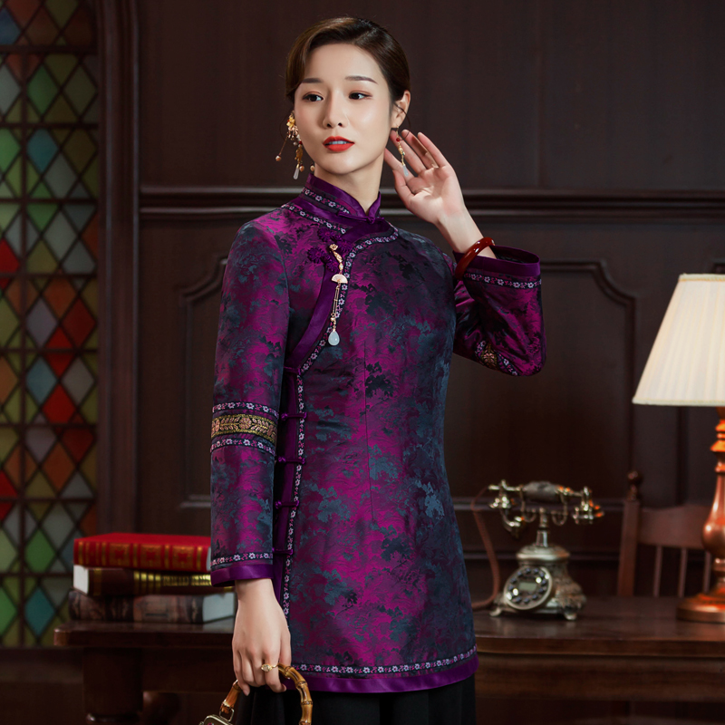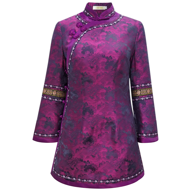 华族经典真丝桑蚕丝唐装女装中国风妈妈冬棉袄盘扣旗袍上衣中长款