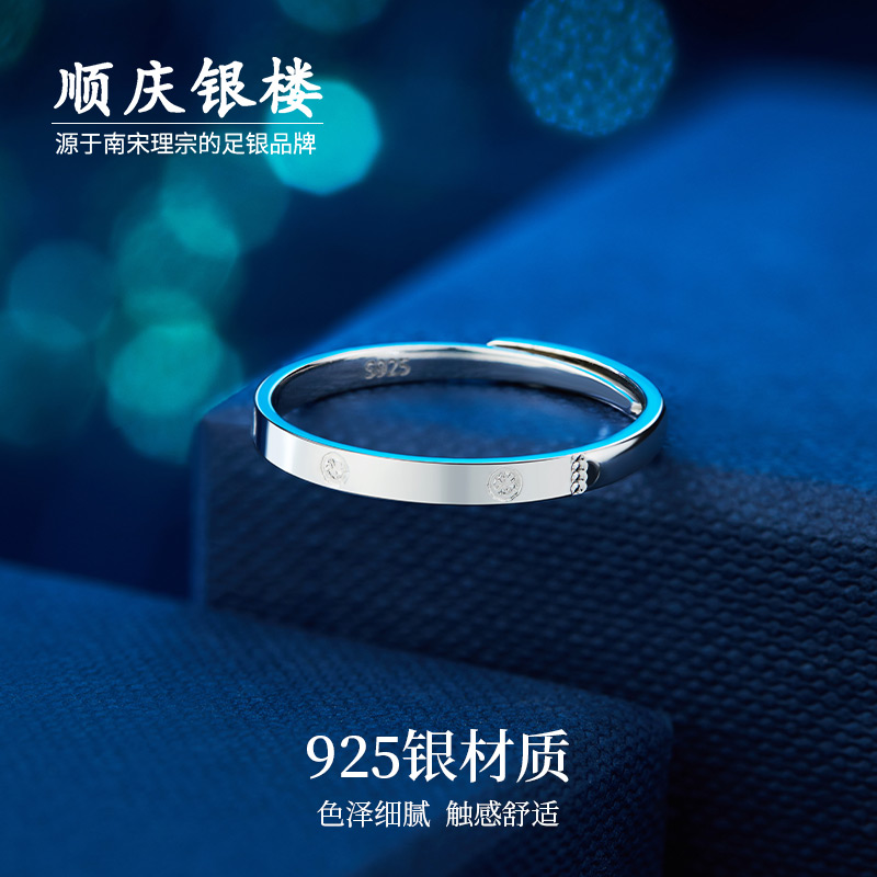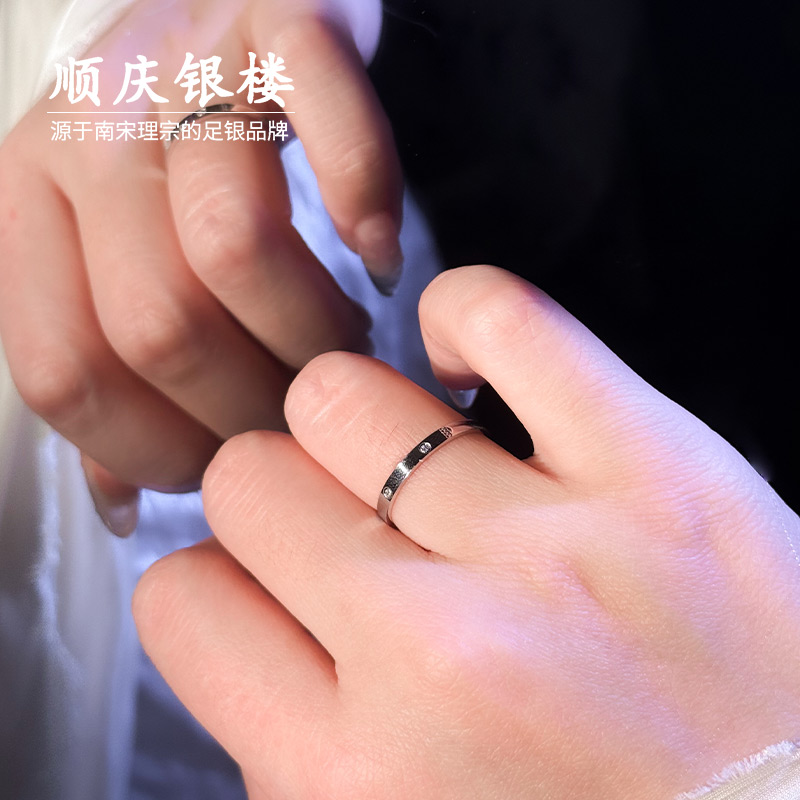 顺庆银楼S925银至简戒指情侣款戒指简约款国风高级感百搭送礼礼物
