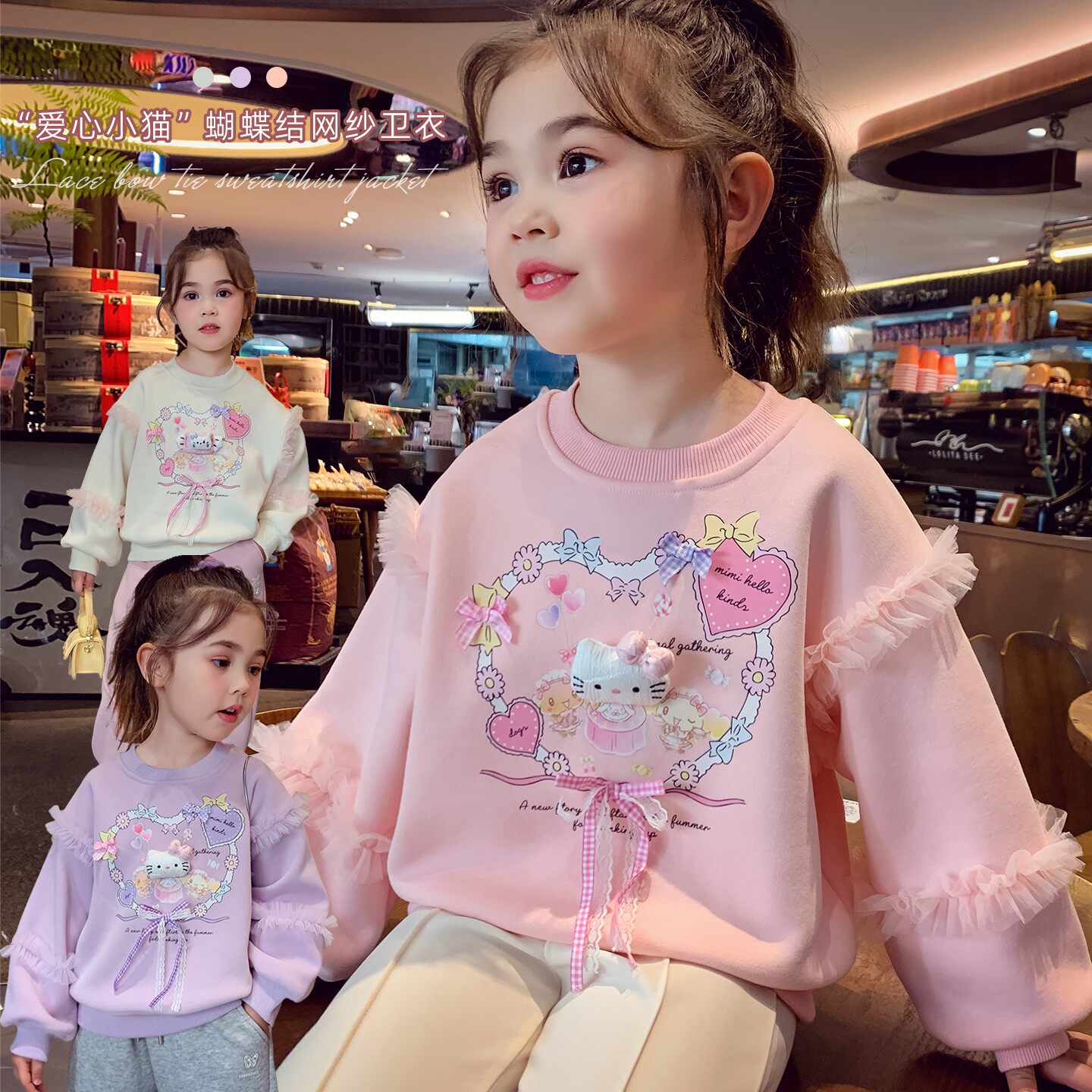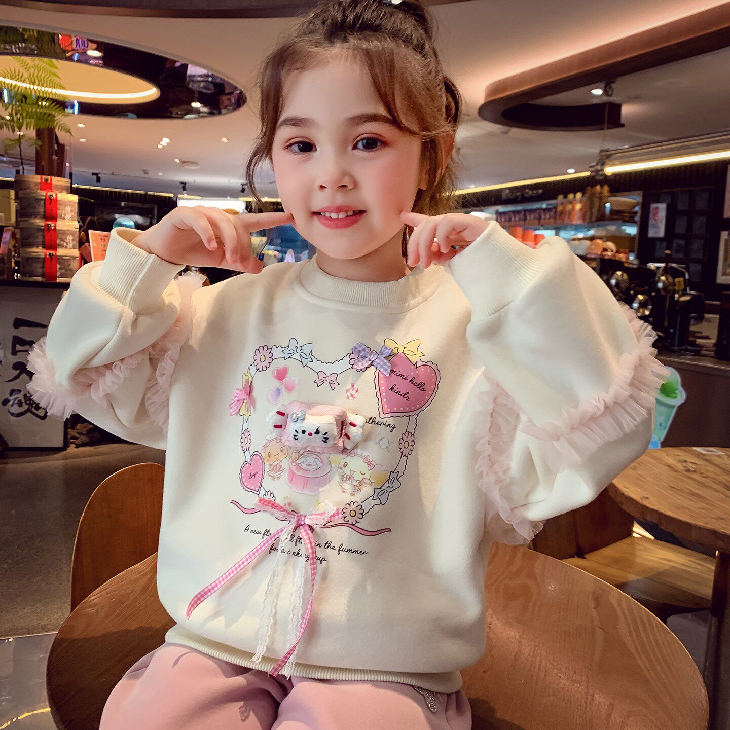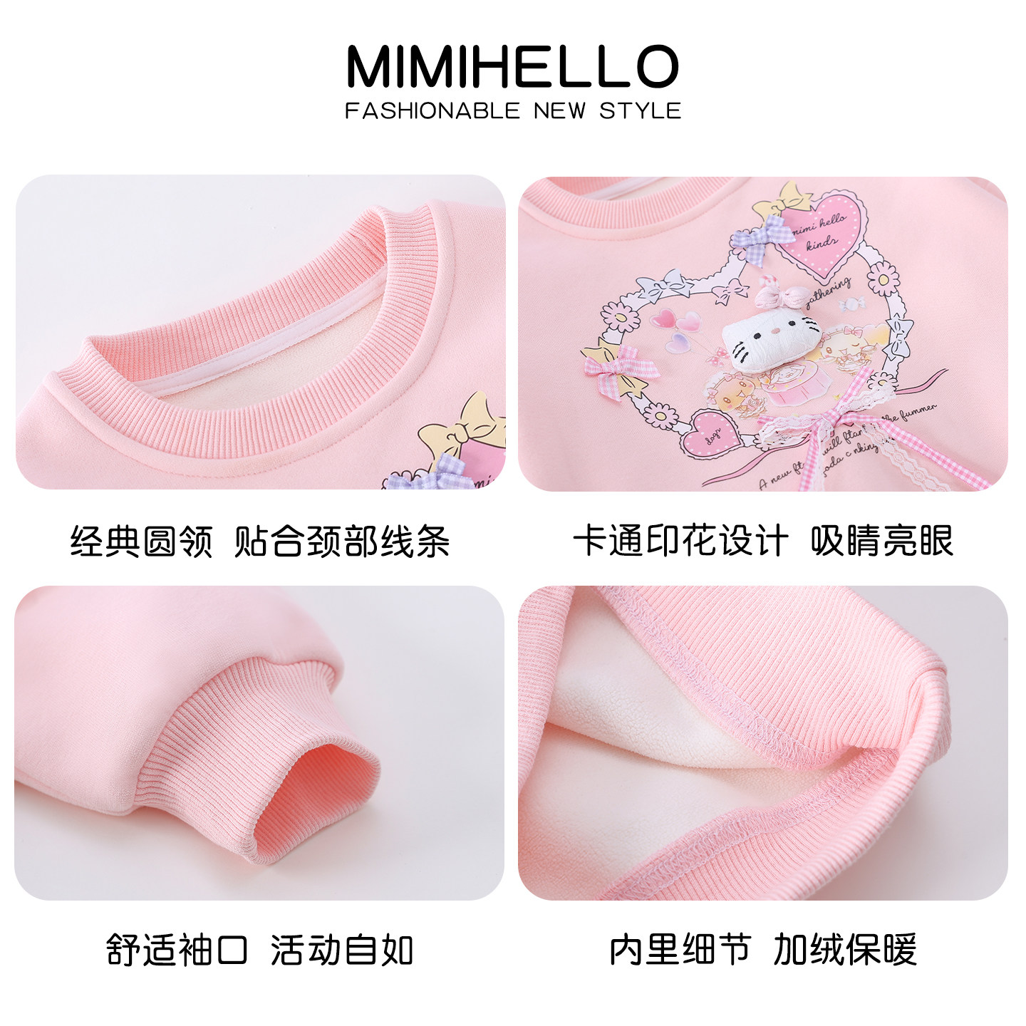 女童加绒卫衣冬装2025新款儿童韩版卡通印花一体绒上衣女孩套头衫