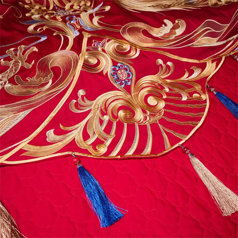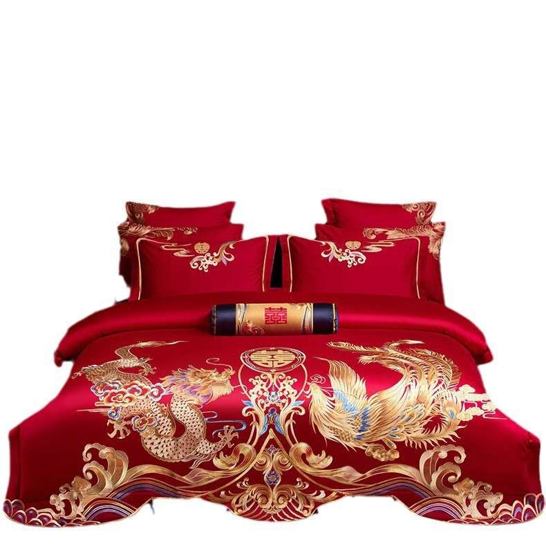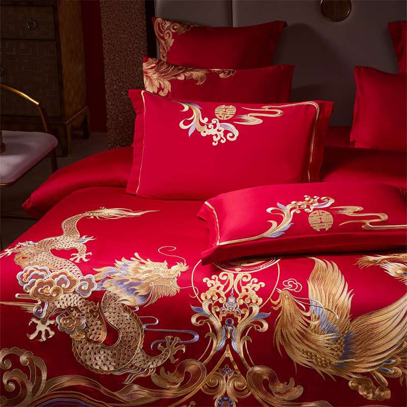 高端120S纯棉长绒棉婚庆四件套新中式龙凤刺绣结婚红色床上用品