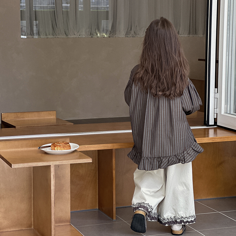 依依妈女童秋装荷叶边条纹衬衫上衣2025秋季儿童时髦洋气娃娃衫潮