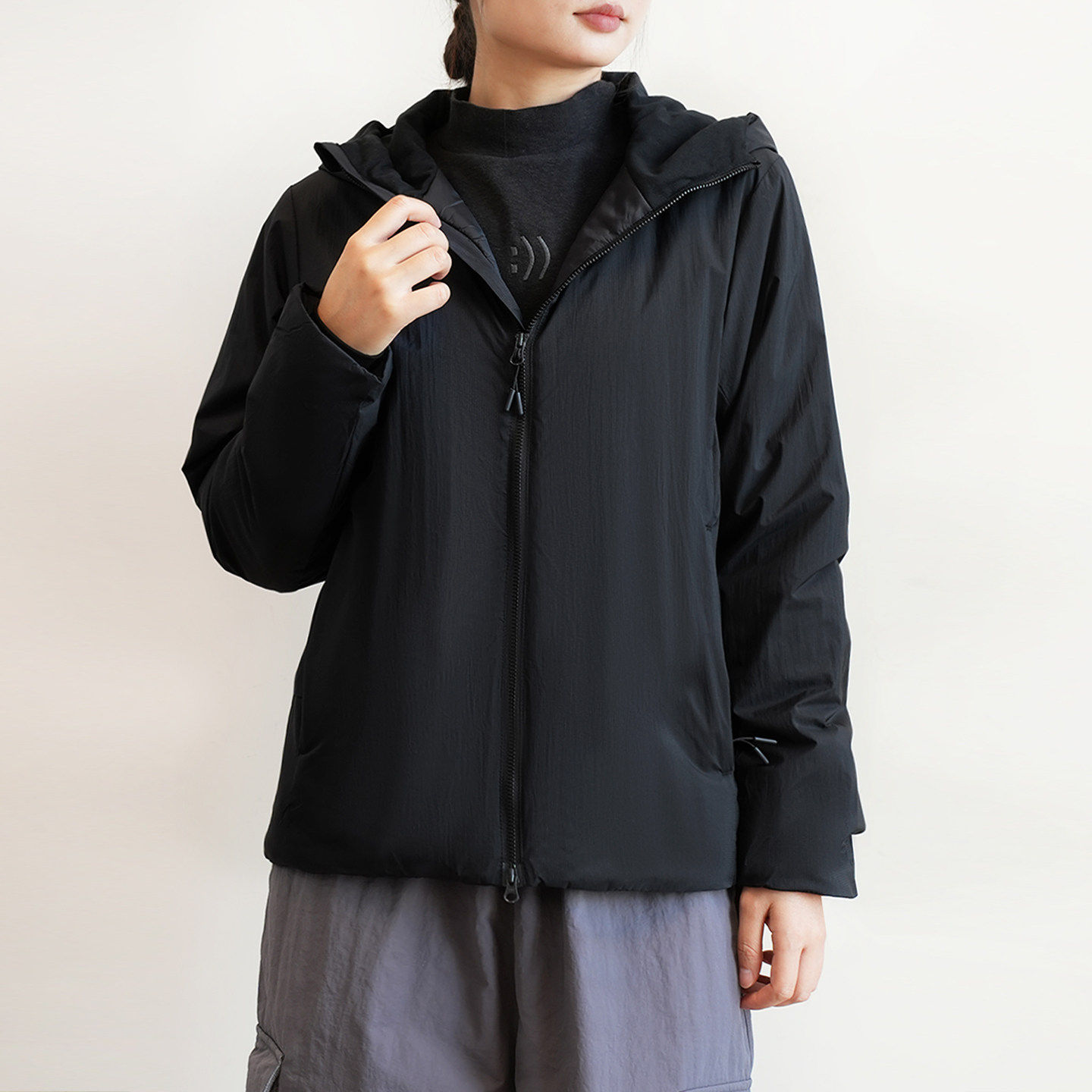 轻量化 女士连帽保暖棉服 纯色简约柔软夹棉外套 防泼水防风 冬k