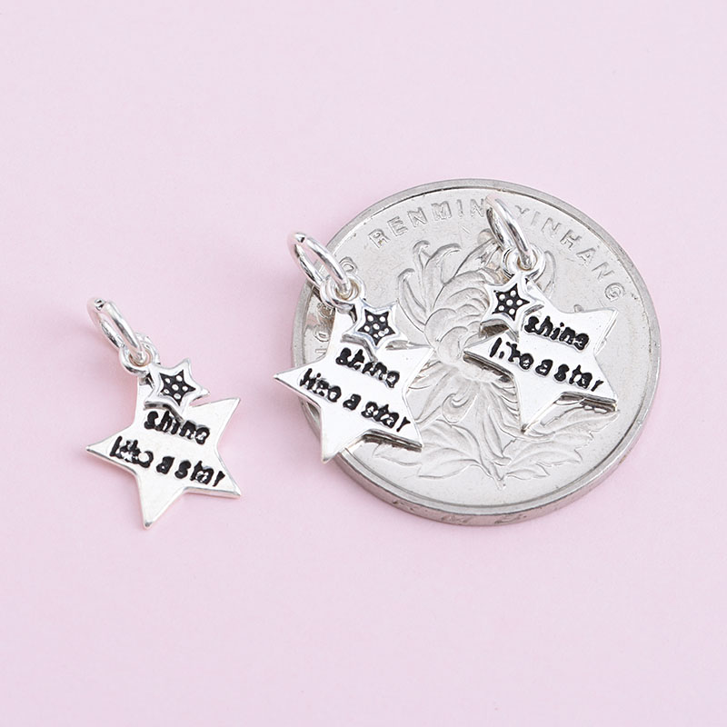 S925纯银diy饰品材料配件 星星五角星吊坠挂坠 手工串珠手链配饰