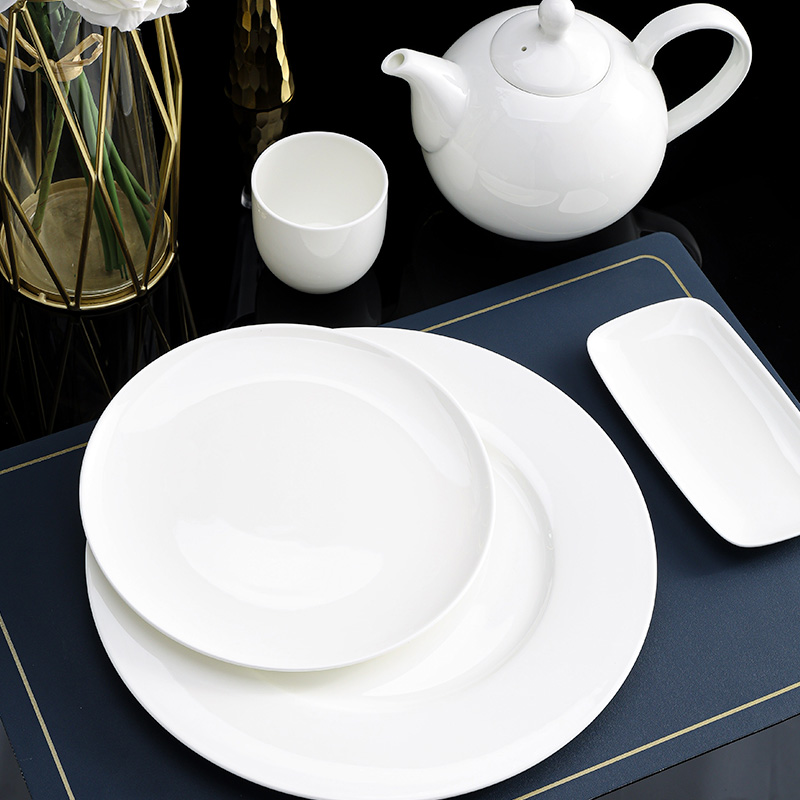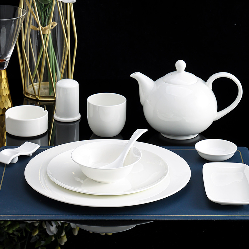 高档酒店餐厅骨瓷摆台餐具纯白盘碗勺套装会所宴会碗碟四件套定制