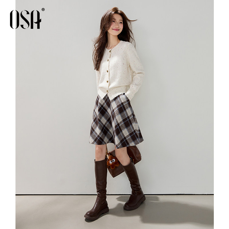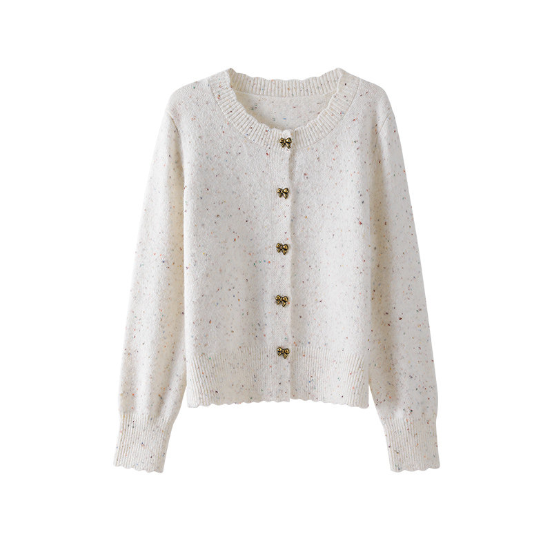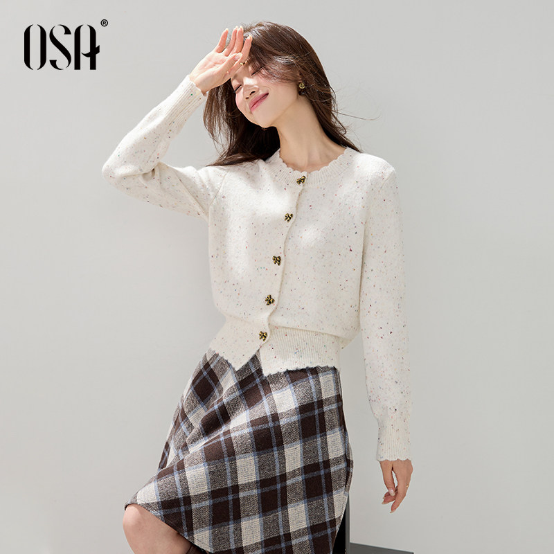 OSA欧莎蝴蝶结彩点针织衫女2025秋冬季新款减龄百搭短款毛衣上衣