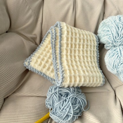 华夫饼围巾手工材料包DIY毛线编织秋冬季送男女朋友礼物粗线保暖