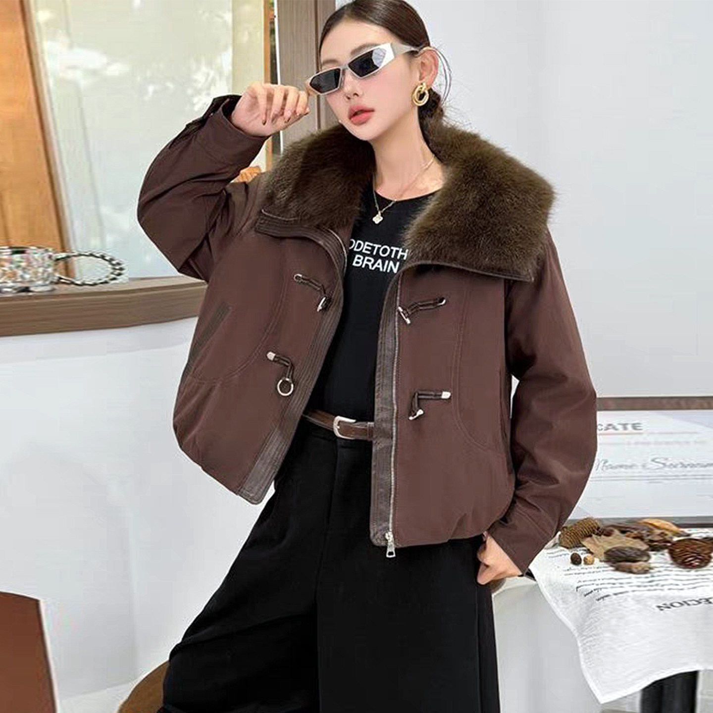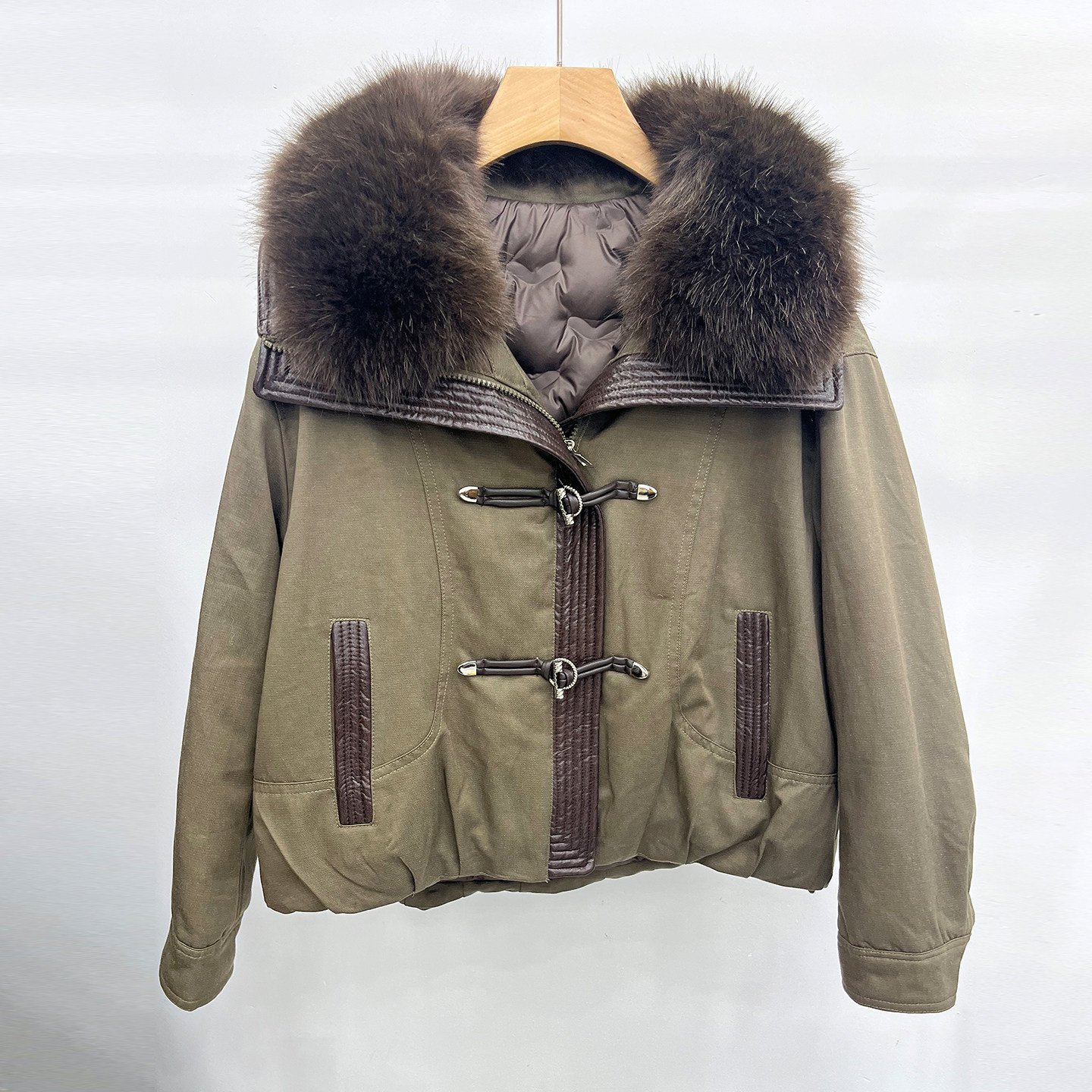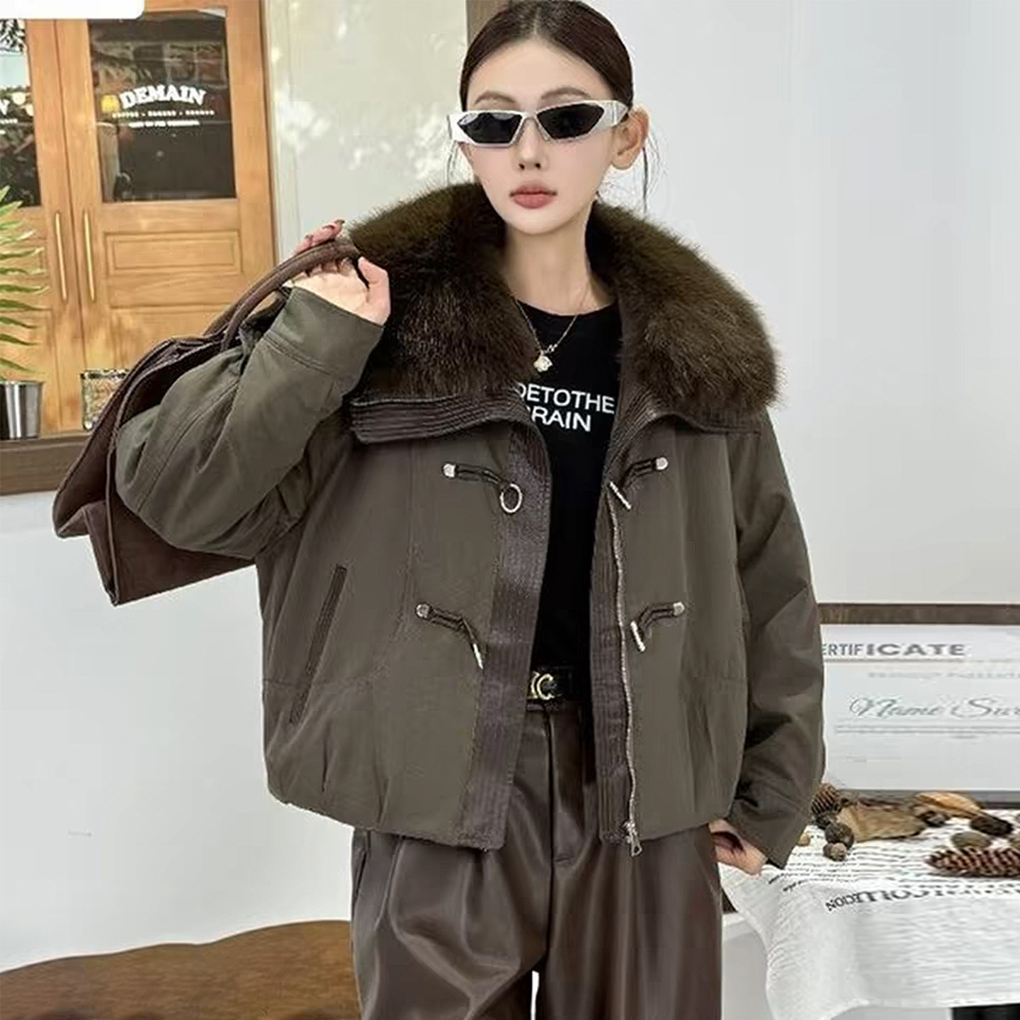 大毛领可拆卸白鸭绒厚外套女2025冬季新款时尚百搭皮扣子羽绒服潮