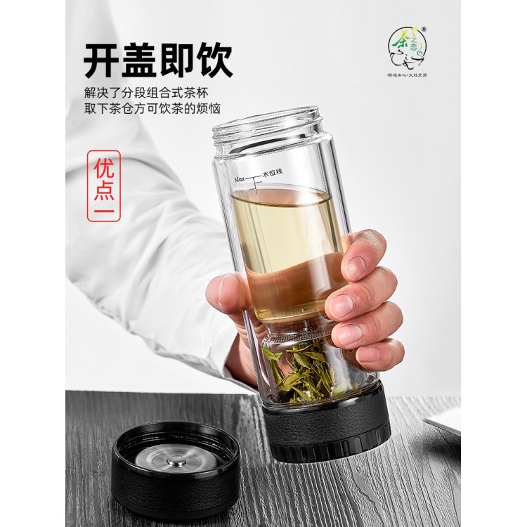 茶之恋茶水分离泡茶杯双层玻璃便携过滤旅行茶叶杯子男士高档水杯