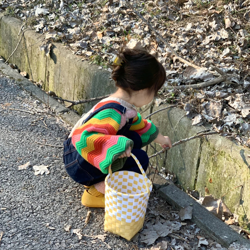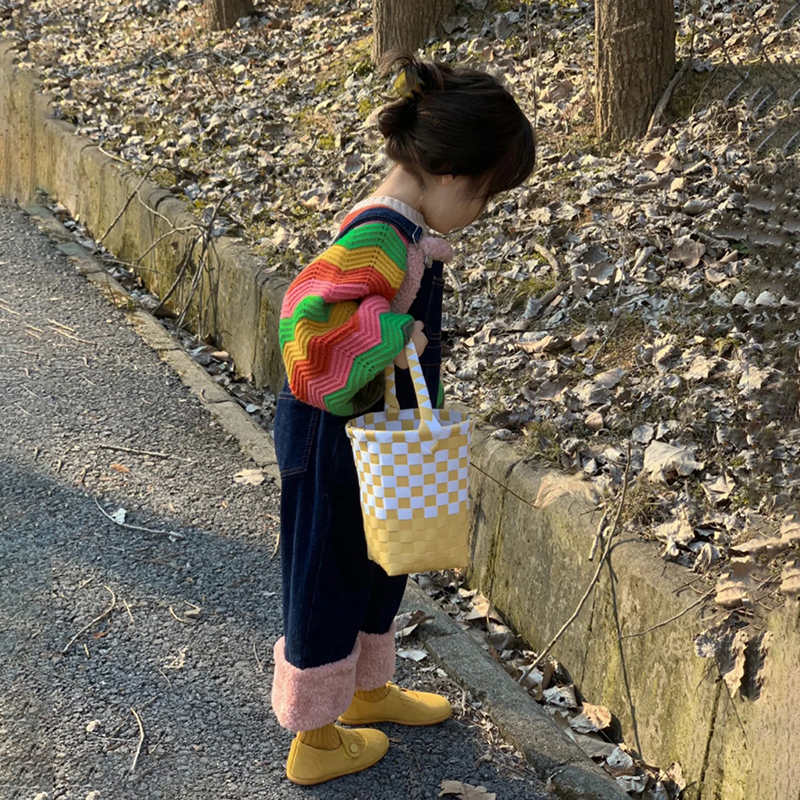 秋季新款童装女童时髦洋气牛仔裤儿童休闲长裤女宝背带裤彩虹毛衣