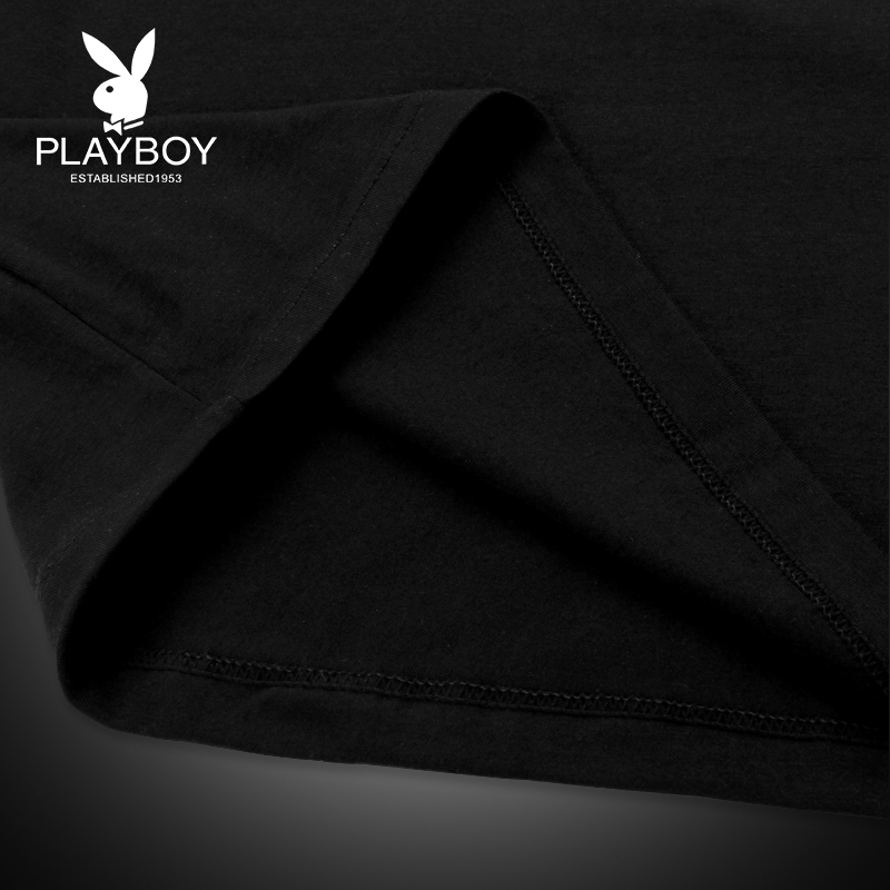 花花公子男装休闲修身上衣男士纯棉莱卡打底衫V领t恤男长袖紧身潮