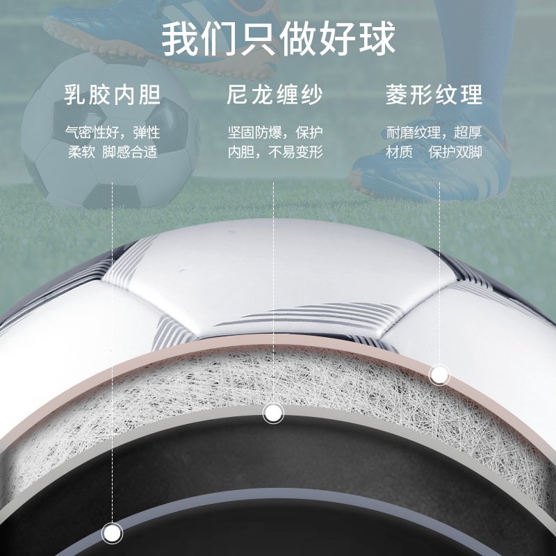兰威足球黑白经典训练5号11人制耐踢1000PU热贴皮成人比赛专用球