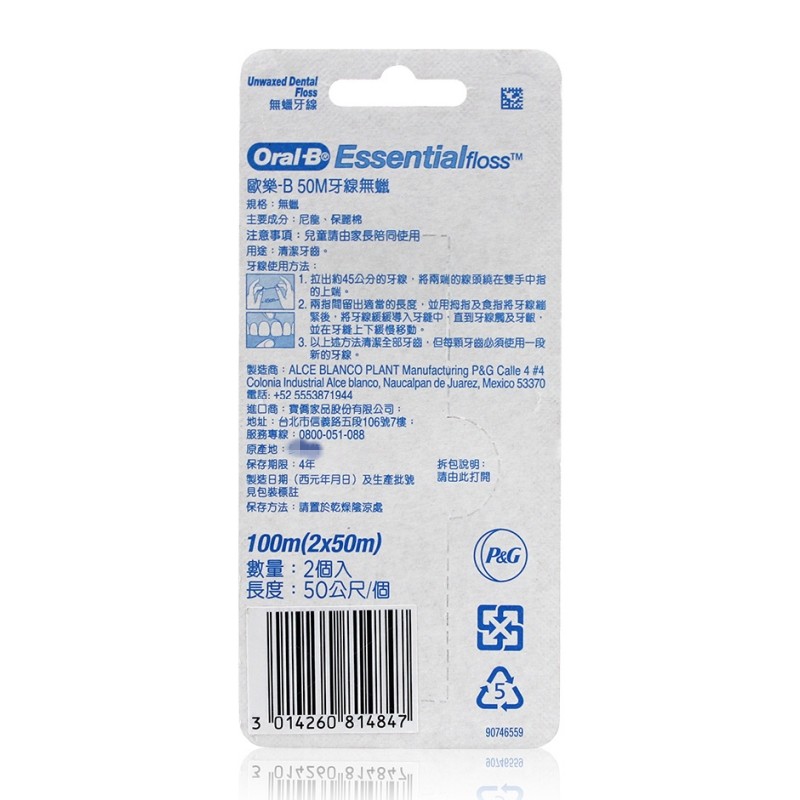 欧乐b台湾进口无蜡50m*4个牙线