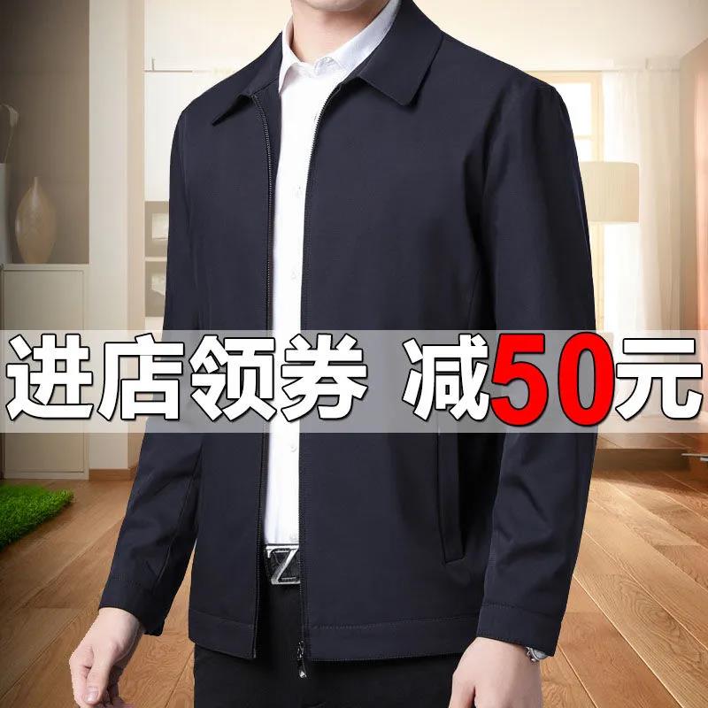 2021中年男士夹克男士休闲爸爸装春秋茄克薄款中老年领导干部外套