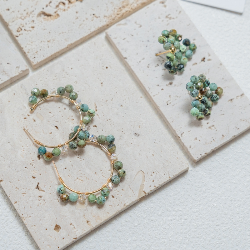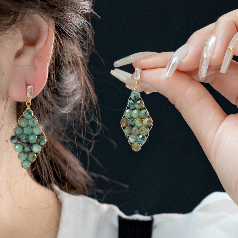 复古小众天然欧式宝石耳坠新款气质银针百搭耳钉耳环耳夹女饰品女