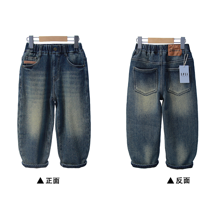啦芙莱童装儿童一体绒牛仔裤2025冬季新品男女童加绒厚长裤潮3303