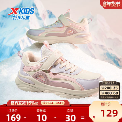 喵喵鞋|特步童鞋儿童新款秋冬运动鞋革面保暖轻便女童大童跑步鞋