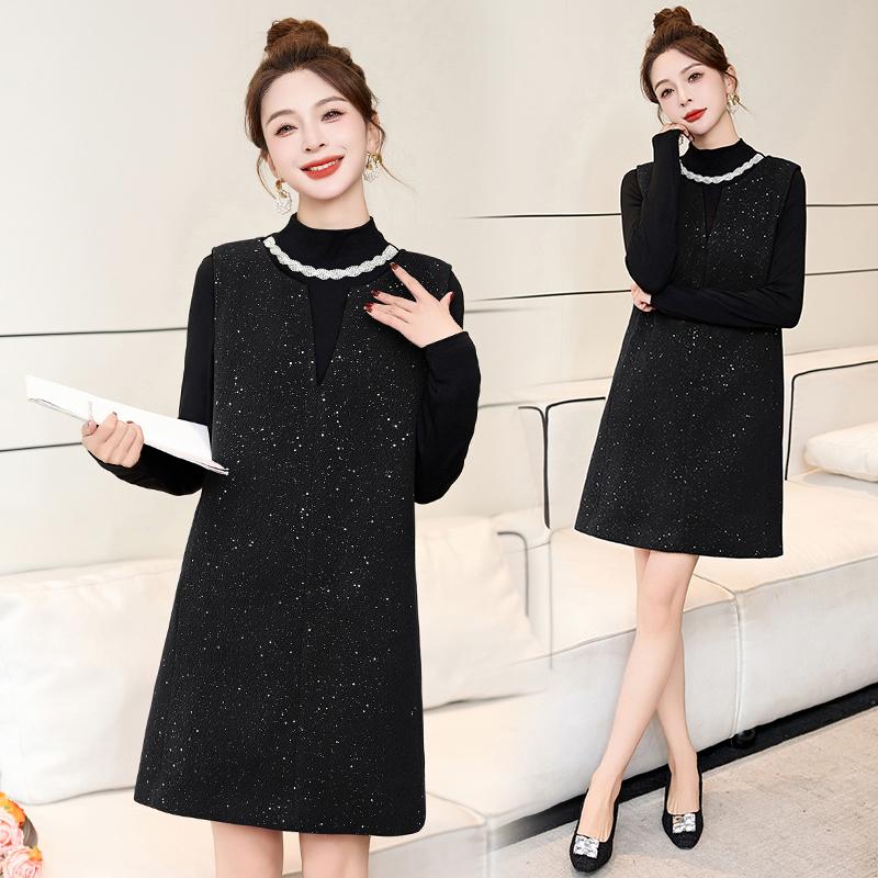 小个子套装女2025年春季新款休闲打底衫马甲背心连衣裙两件套洋气