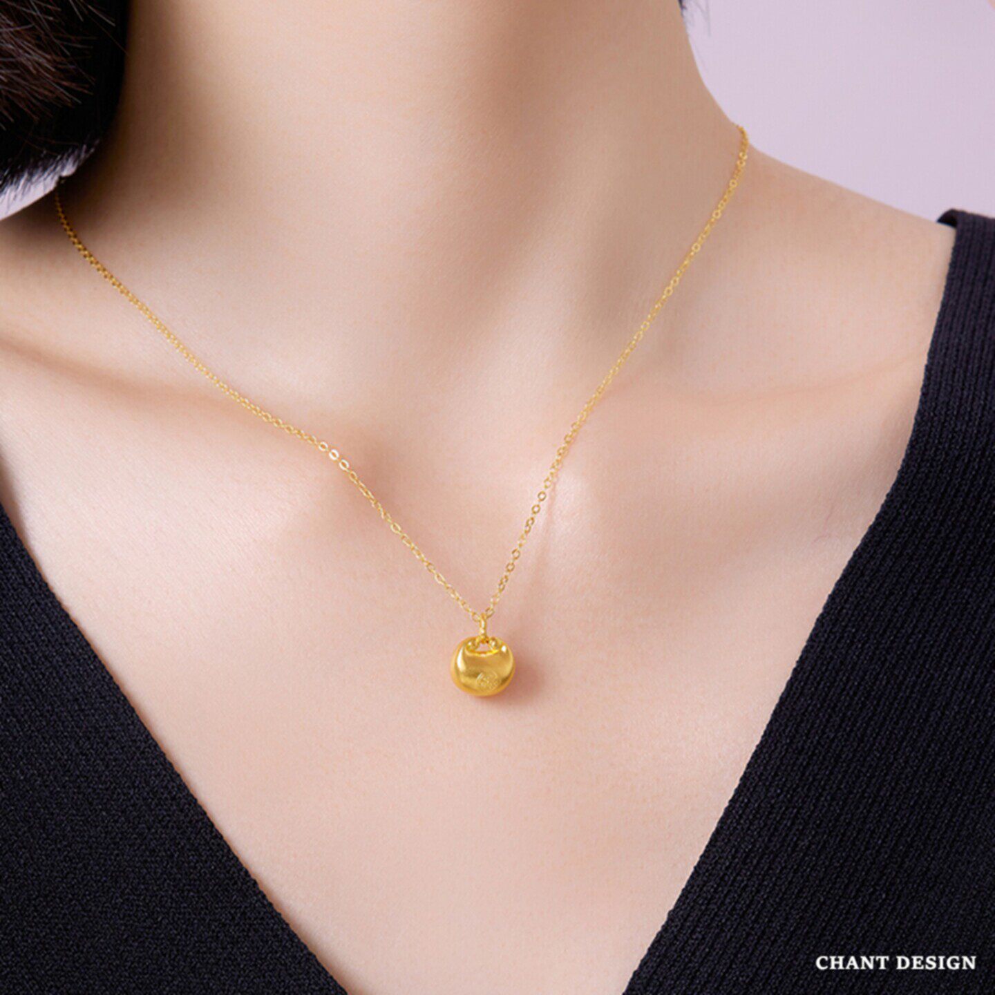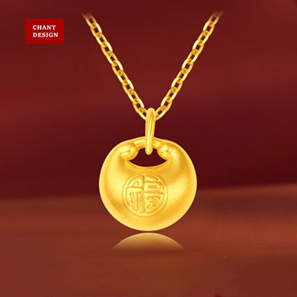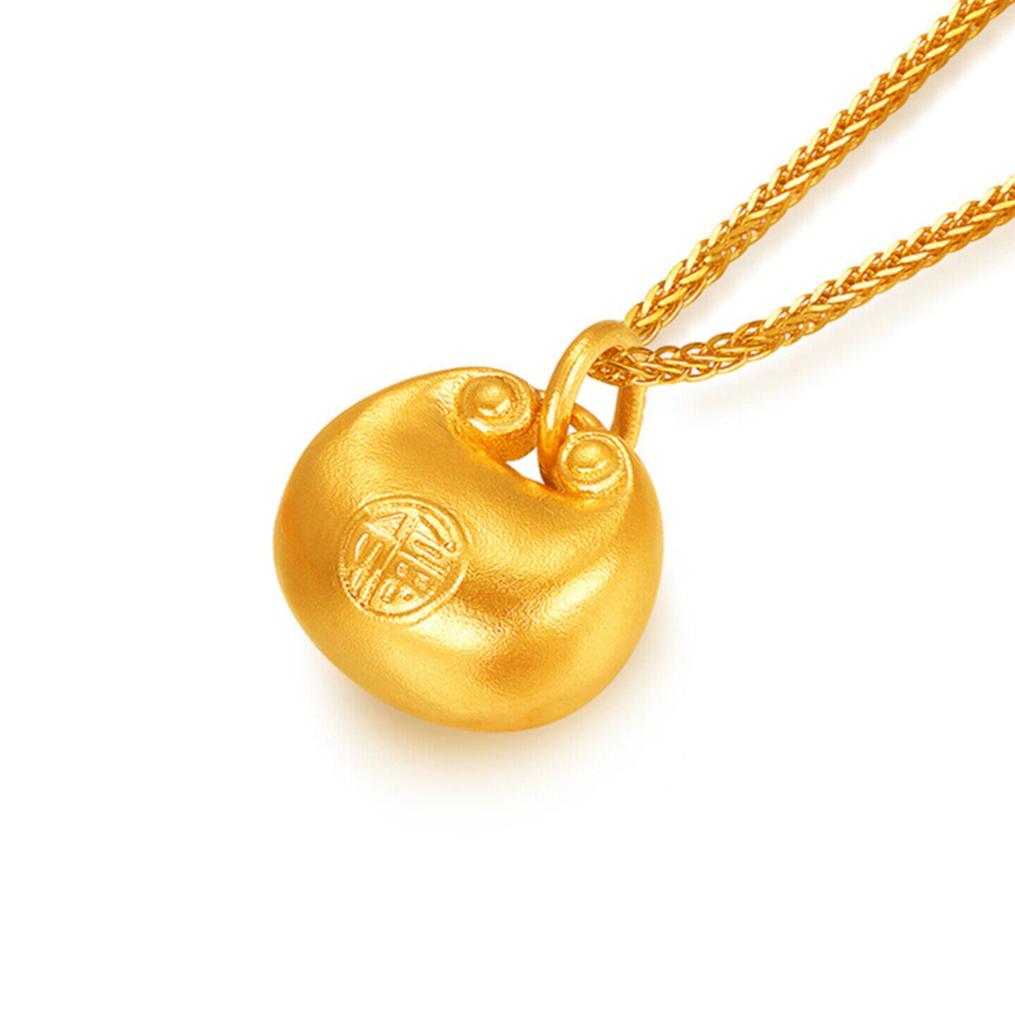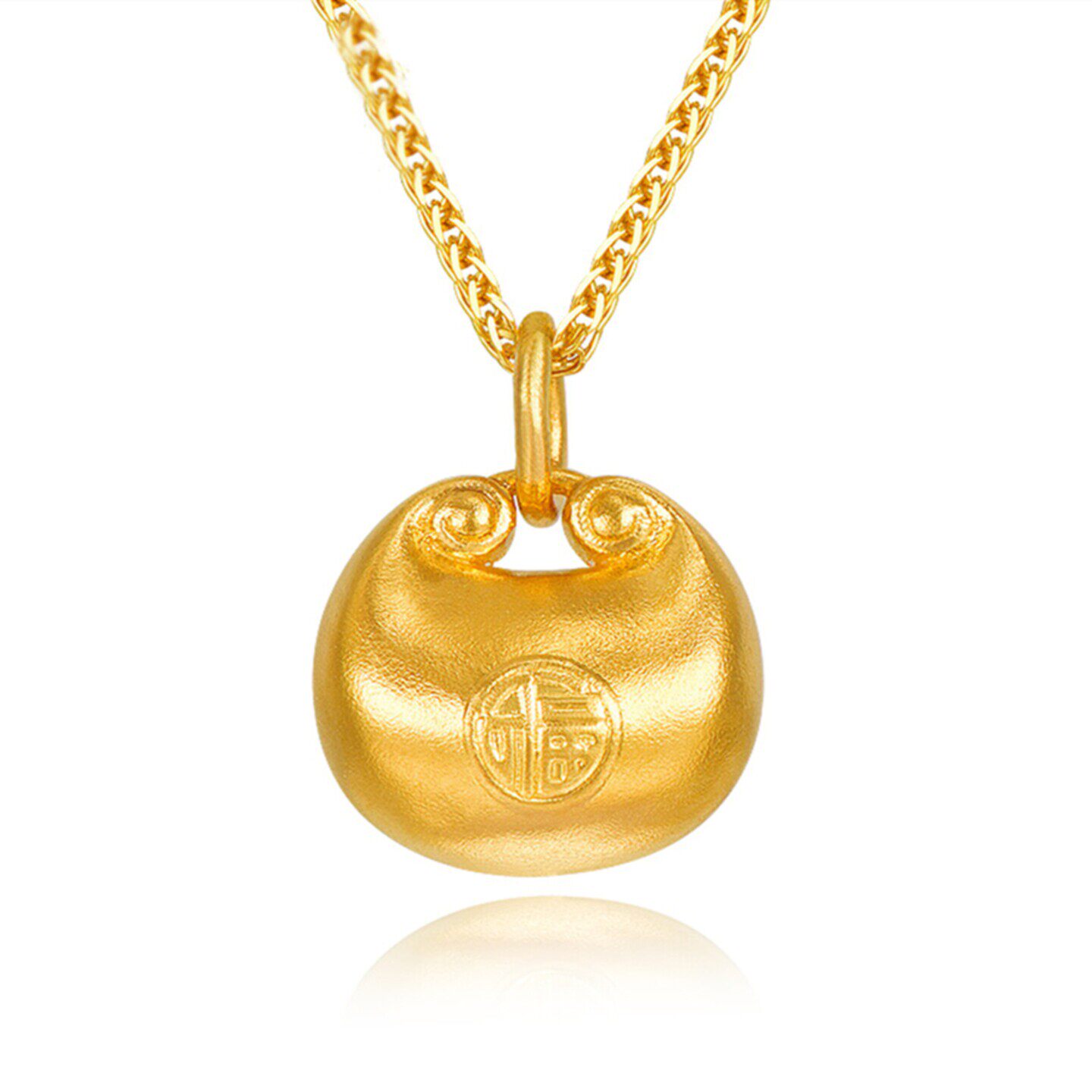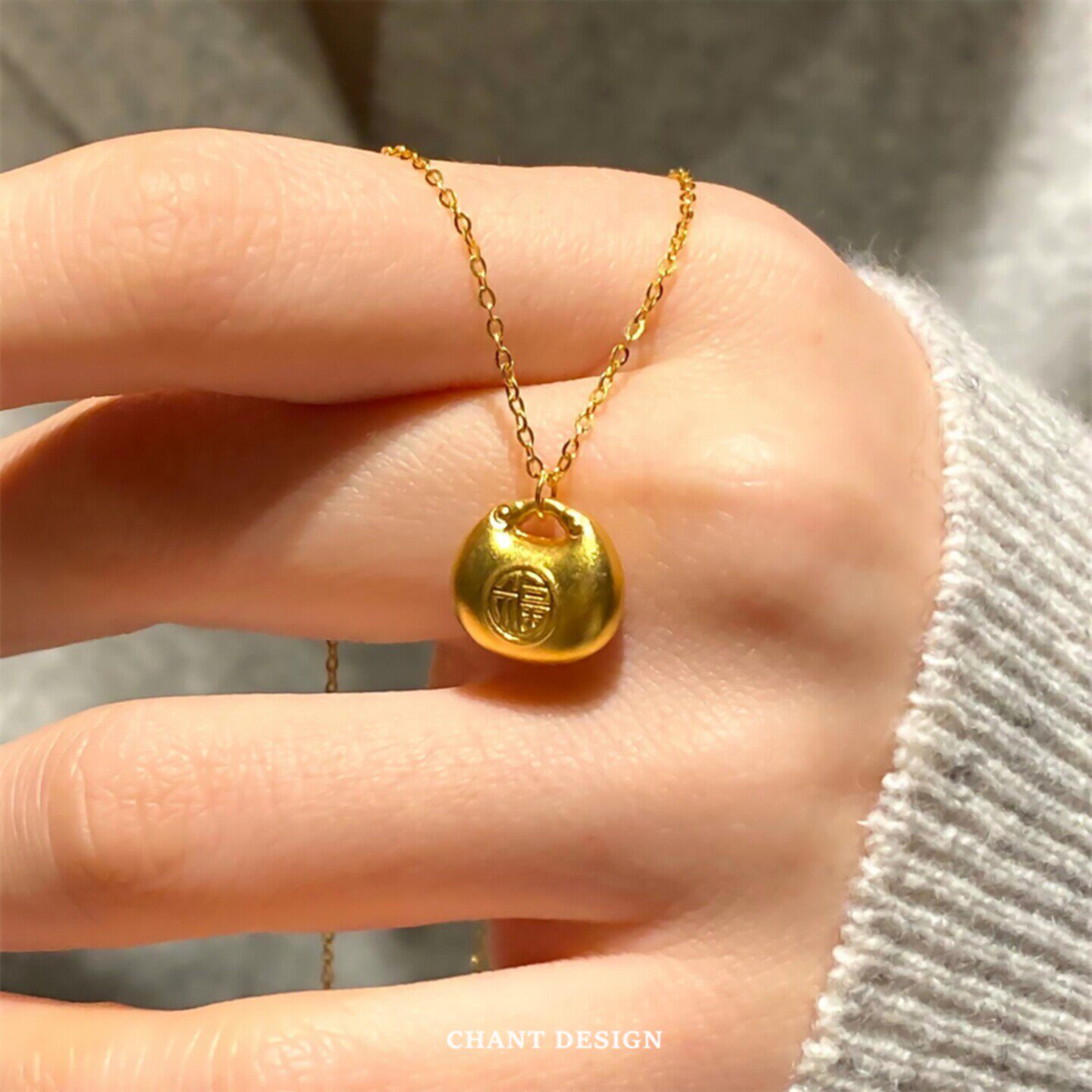 18K金胖福古法福字锁包项链 女纯银小金坨长命锁祥云小福袋礼物潮